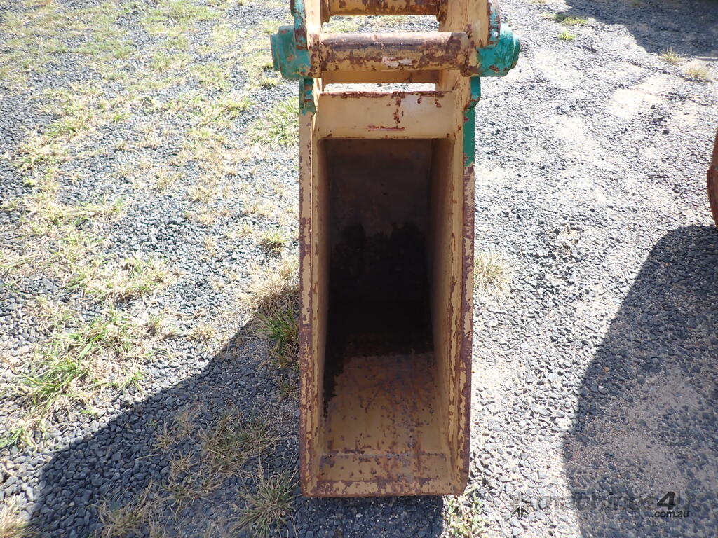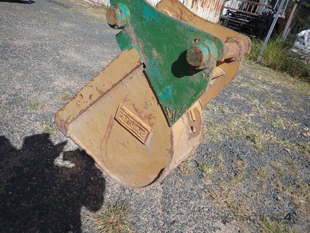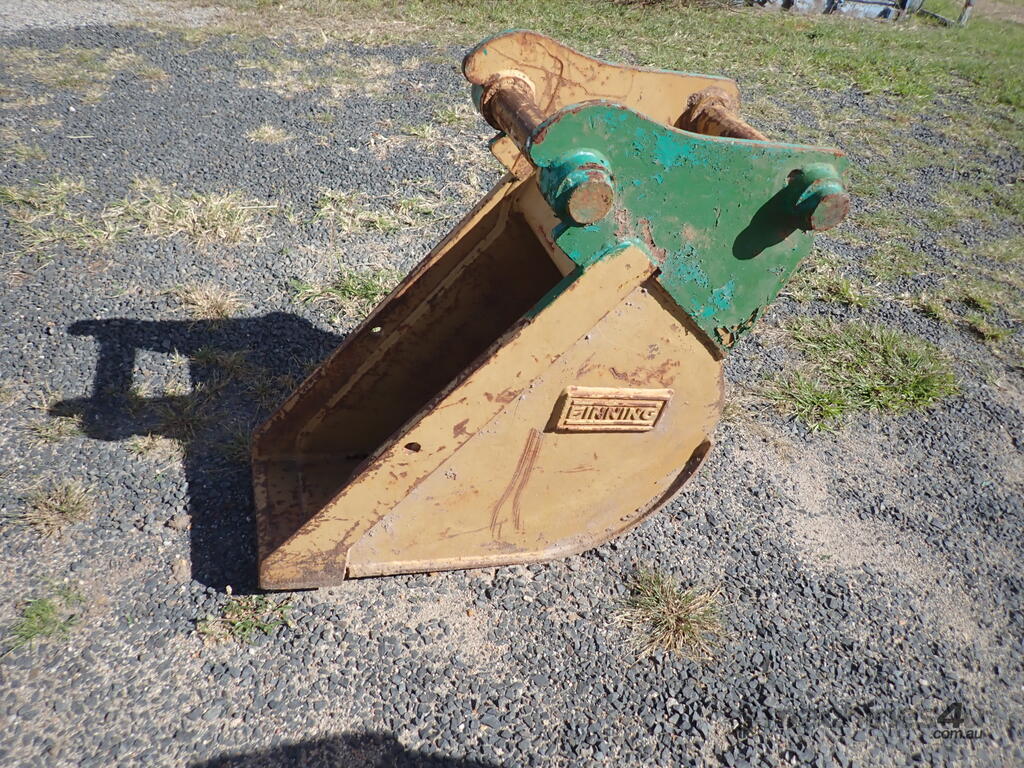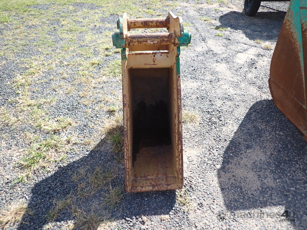 Excavator trench bucket, Finning brand, 375mm wide, cutting edge for a clean trench, 400mm pin centers, 260mm between ears, 65mm diameter pins, lifting lug, has done very little work and is in very good condition, suit approximately 14 ton excavator or similar.