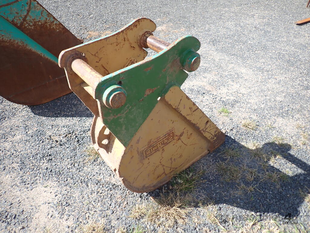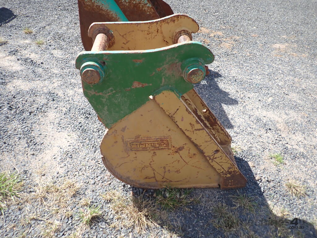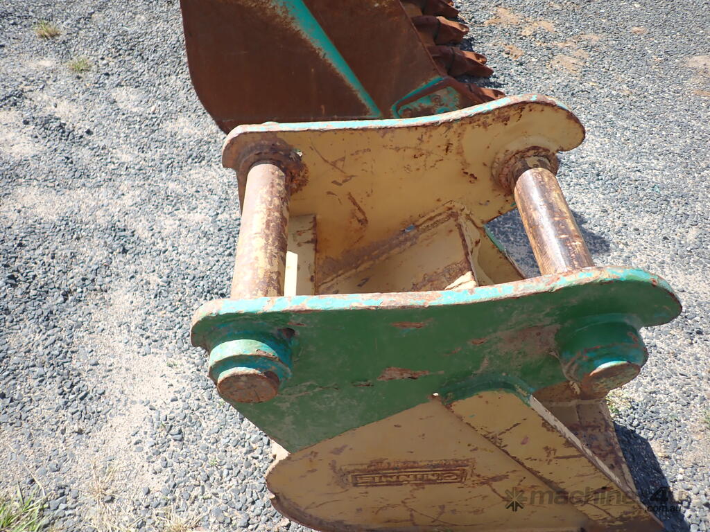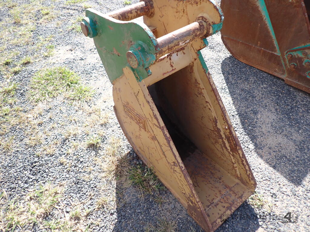 Excavator trench bucket, Finning brand, 375mm wide, cutting edge for a clean trench, 400mm pin centers, 260mm between ears, 65mm diameter pins, lifting lug, has done very little work and is in very good condition, suit approximately 14 ton excavator or similar.
