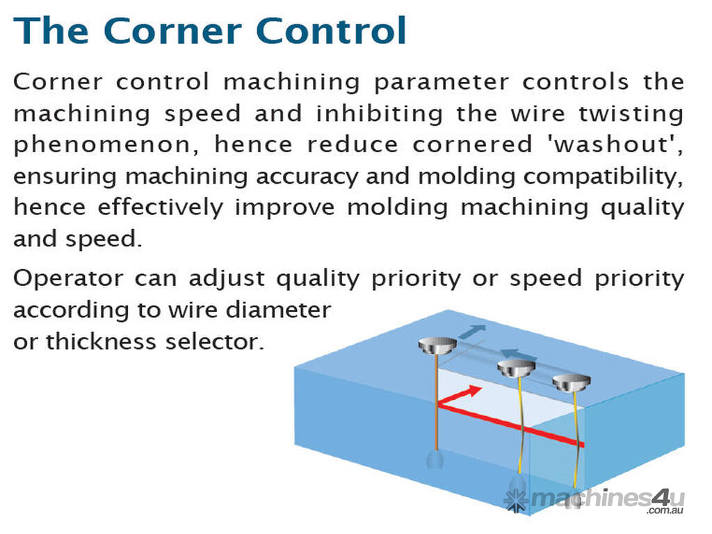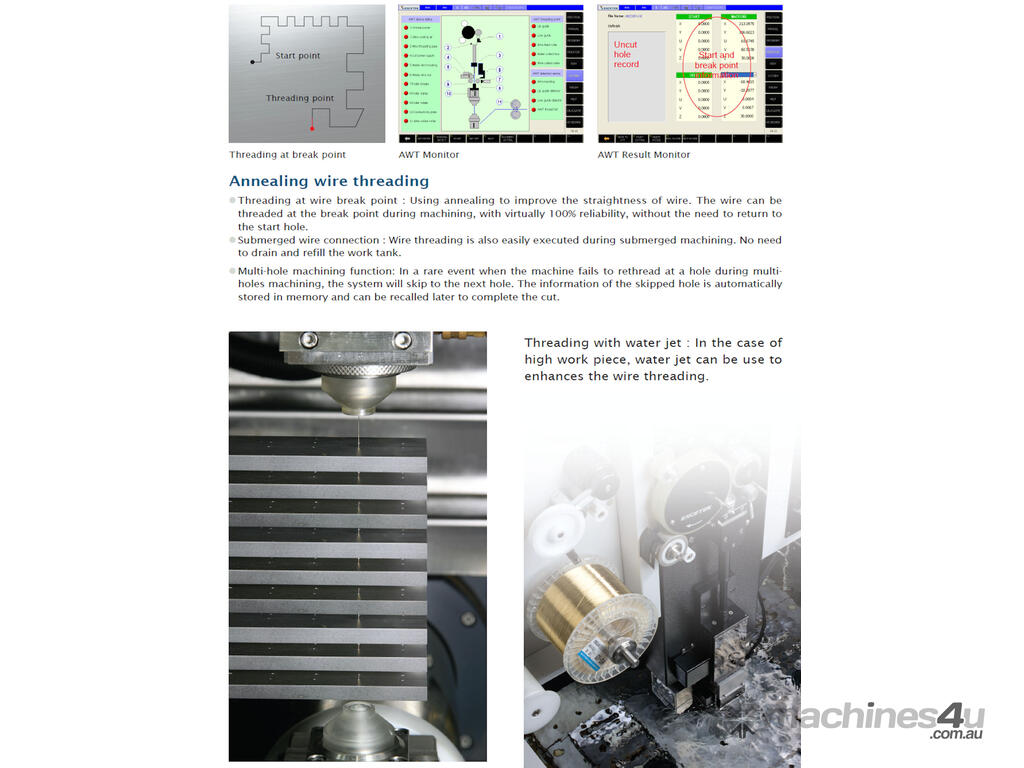 Standard Auto Wire Threading option with a threading time of approximately 10 seconds offers threading at the break point with almost 100% reliability, threading with water jet as well as threading under water.