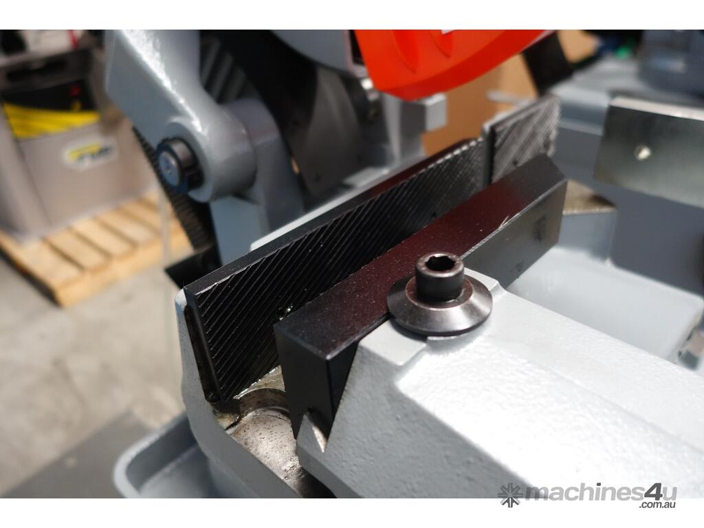 The Eximus CS350V variable speed coldsaw manufactured in Taiwan features high quality cast iron construction which will ensure many years of accurate cutting. Variable cutting speed of 24-120rpm is achieved via an inverter driving the motor delivering power to the blade for cutting solid, tube and pipe. Easy to maneuver head mitres in both directions ± 45° using an ergonomically placed locking lever. The quick action dual clamping vice will increase your productivity, and dead man trigger switch located on the cutting handle, along with spring assisted head return reduces operator fatigue. We always take safety seriously, the CS350V is equipped with an automatic retracting safety blade guard which covers the blade when returned to the home position.
