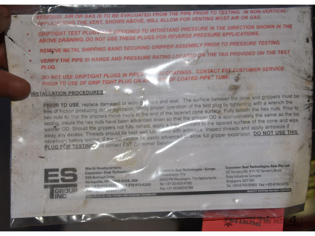 We have a range of Expansion Seal Technologies EST GripTight High Pressure Tube Pipe Isolation Plugs.