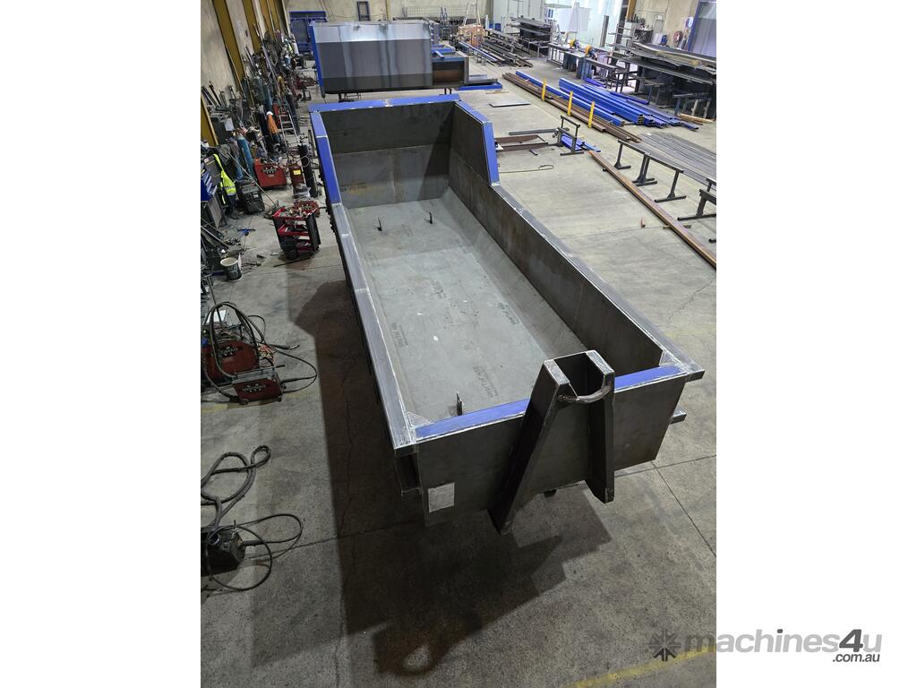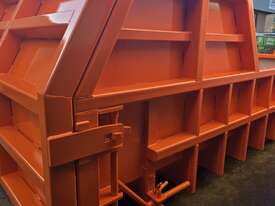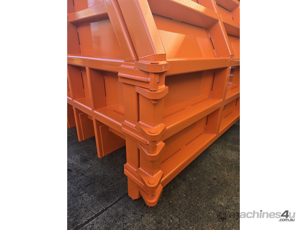 Extreme duty hooklift bins made right here in Australia from QT450 6mm plate, heavy duty floor structure and wall ribs, Engineer Certified lifting loop, extreme duty door locking for the harshest environments.  Custom made to your specific application.  Call us now to discuss your requirements.