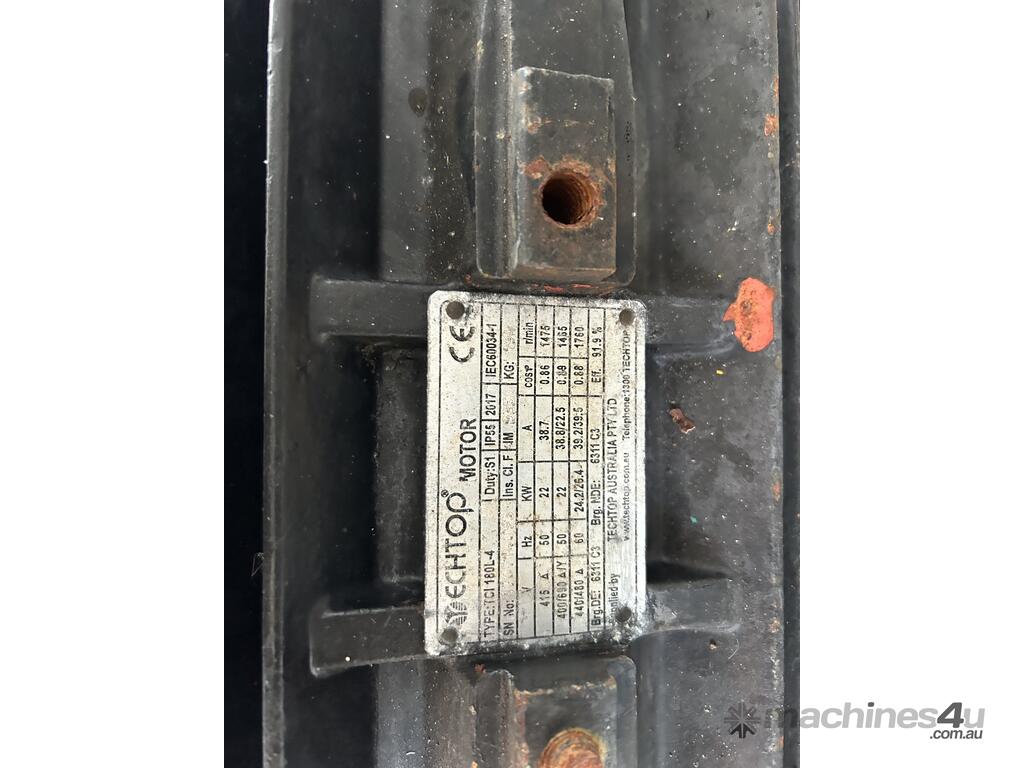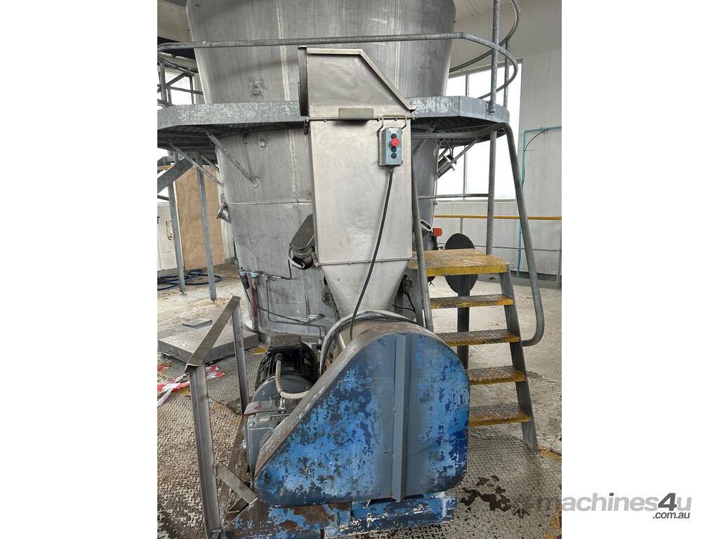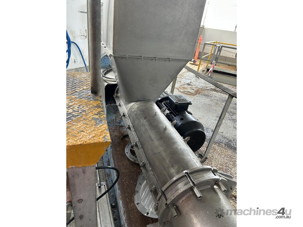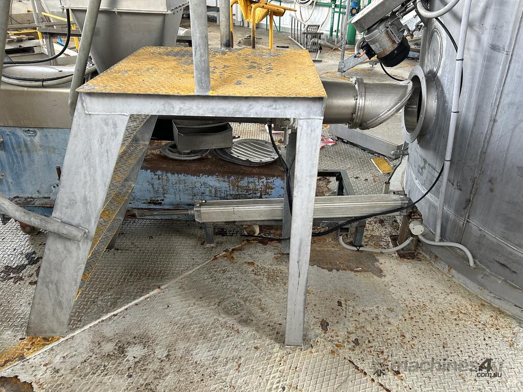 Extruder fitted with stainless steel hopper, comes with Varval reduction gearbox, model TRD, s/n 62010180, ratio 10.1:1 paired with Echtop 3 Phase 50HZ variable speed motor s/n , this unit is on wheels with hydraulic ram, not hard wired .