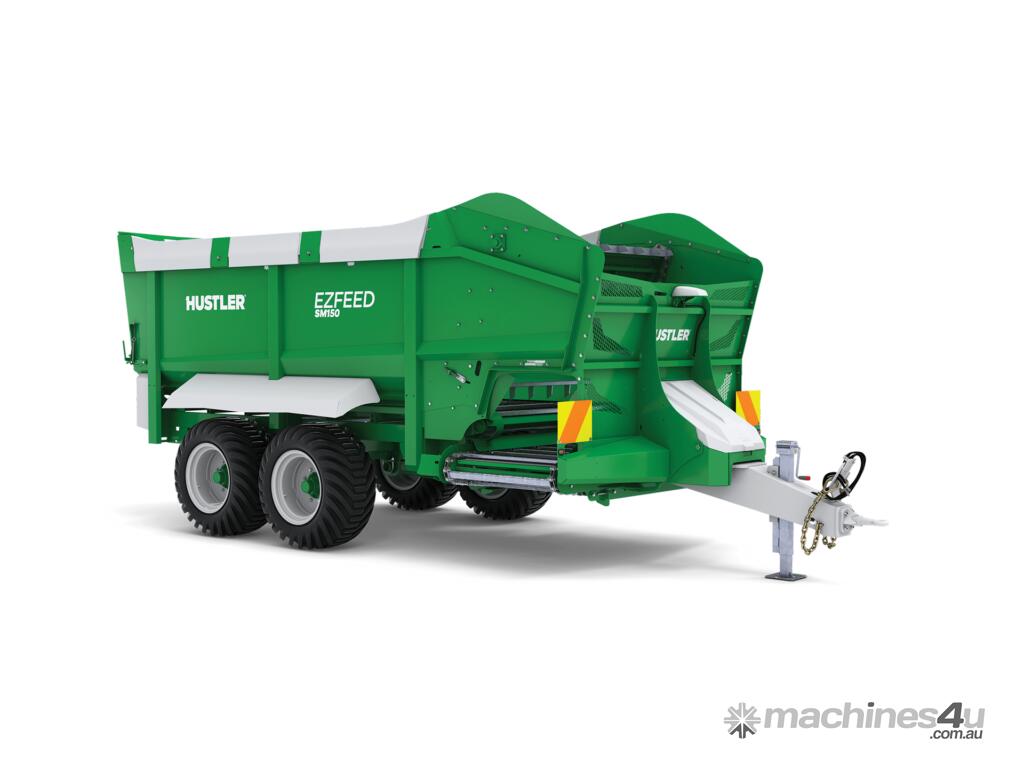 + Standard with: Road lights, Haz panels, Safety chains, Ladder, Sloping steel mudguards, crash bars, central greasing, auto release tailgate, chain & bar discharge conveyor, etc