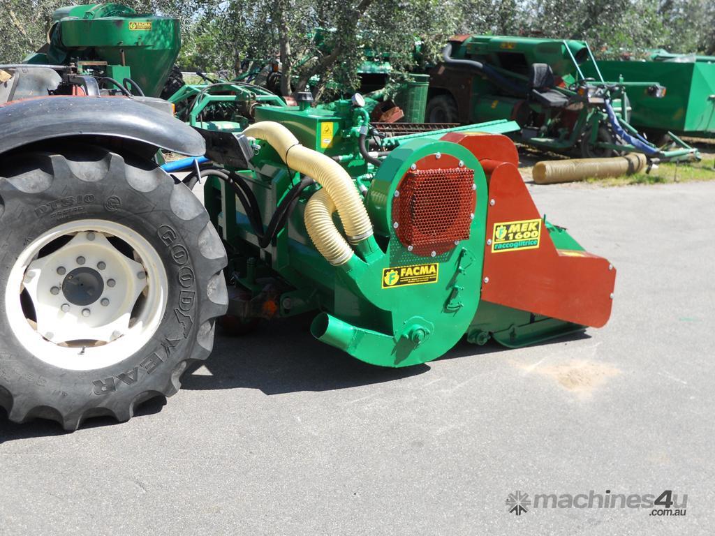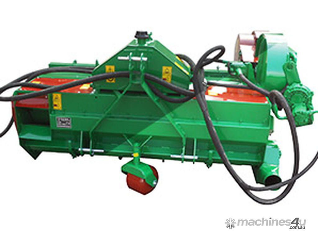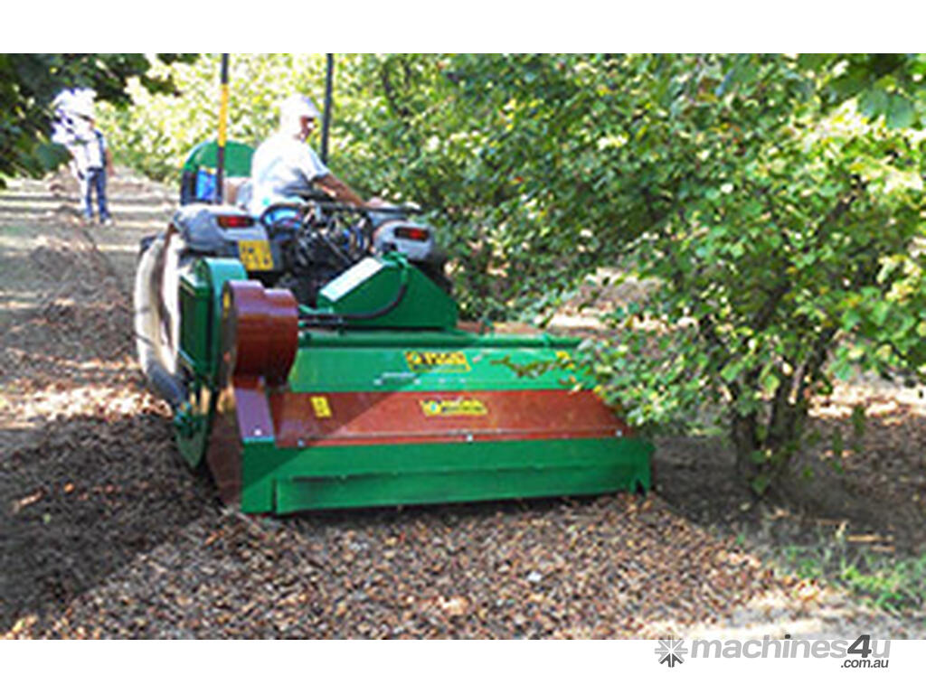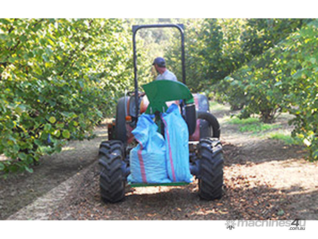 The new mechanical mounted harvester MEK 1800 permits the shell fruit harvest thanks to the principle of mechanical gathering from the ground. The machine is attachable to tractors with three point linkage both anterior and posterior, power take off of 540 r.p.m. The harvest is carried on by horizontal brushes which displace the product towards a series of augers and screens (replaceable in base of the calibre of the fruit to harvest) which make a first cleaning. In the end the product is pushed by a fan placed at the machine’s side in bags or in a trailer. On demand it is possible to install a lateral brush to harvest in the inter-row. For maximum harvesting performance, it is suggested to prepare the ground, working it different times by mulcher (grass cutting) during the previous year and before the produce falls to the ground