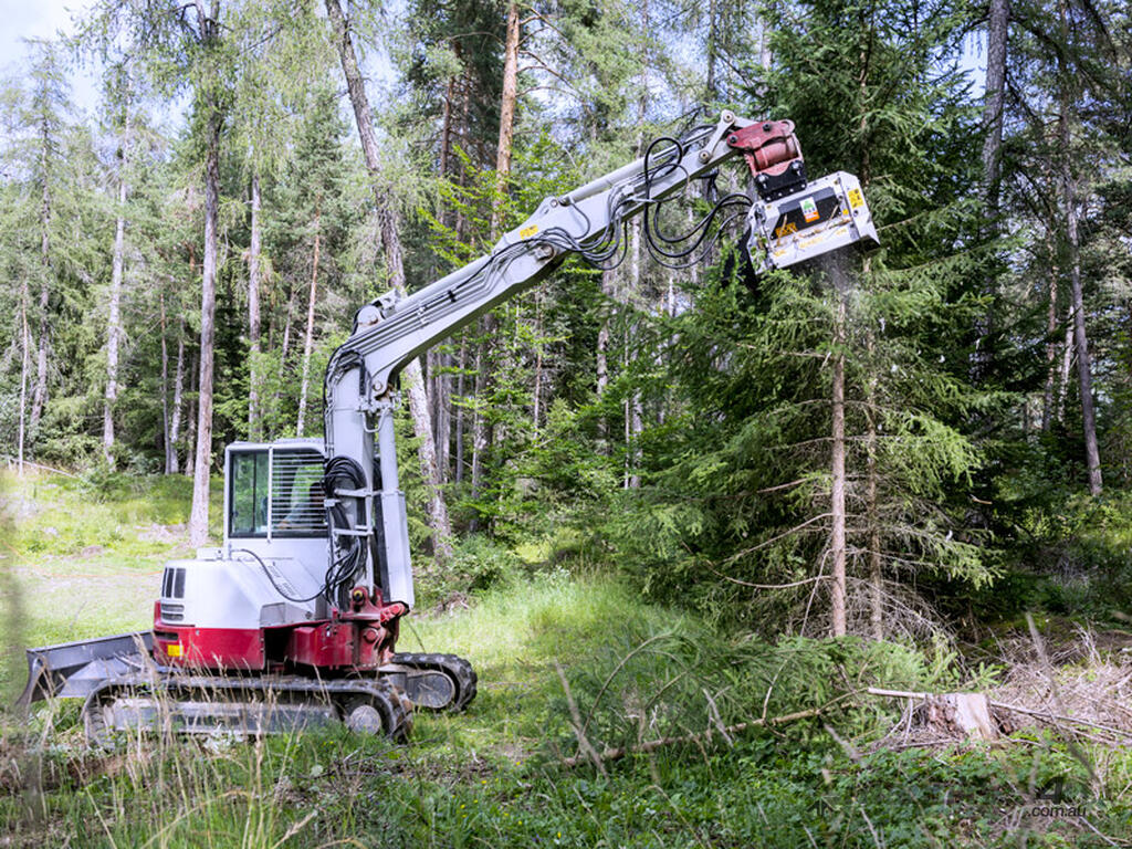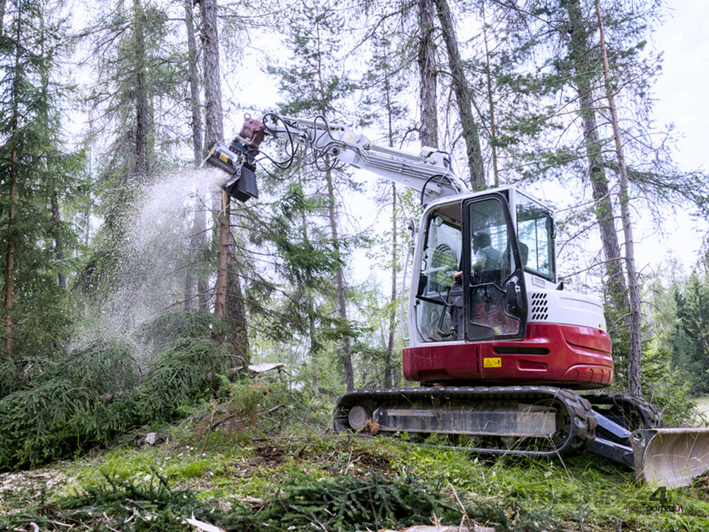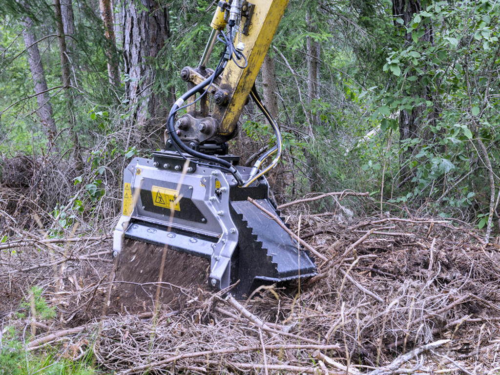 FAE introduces a new line of professional mulchers for excavators equipped with Bite Limiter technology. Special steel profiles limit the depth of blade action, reducing the demand for power, guaranteeing speed and exceptional performance. The BL1/EX (for 4-7.5 t excavators) has a 800mm / 31in working width and can mulch logs up to 12cm / 5in in diameter. The piston motor (with manually controlled variable displacement) makes it easy to use this mulcher on different excavators with different oil flow rates. The BL1/EX has a rotor equipped with a heat-treated forged steel tooth holder, together with Type E reversible blades. This light, compact mulcher is easy to manoeuvre and perfect for various types of forestry work.