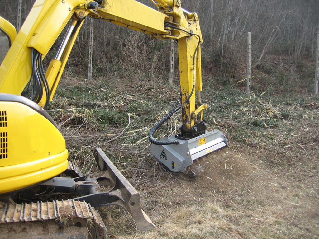 Description: Mulcher with swinging hammers rotor for excavators having a weight between 6 and 13 t.