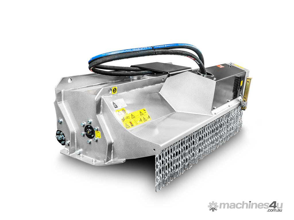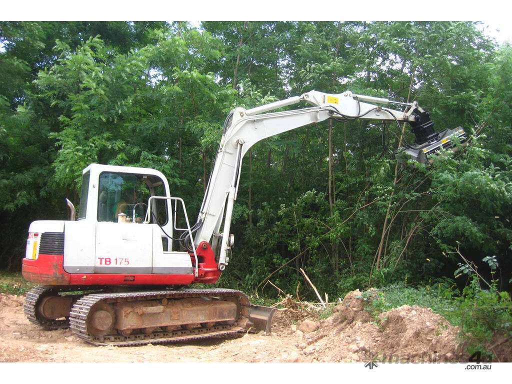 This mulcher can be equipped with a standard 27cc motor or an optional 38cc motor to mount to excavators ranging from 5.5 to 7.5 tons.