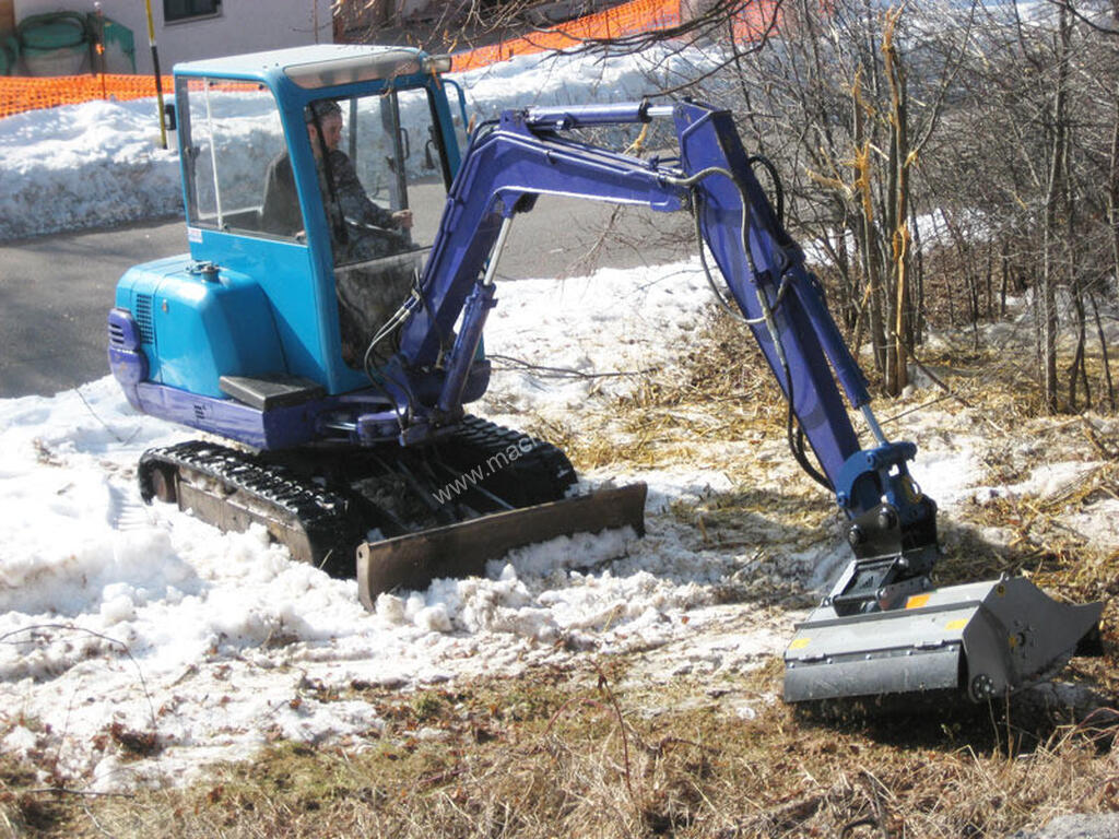 Description: Mulcher with swinging hammers rotor for excavators having a weight between 3,5 and 5,5 t.