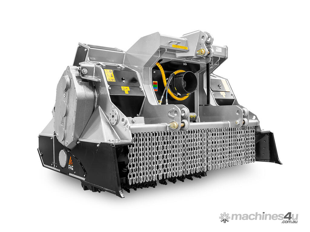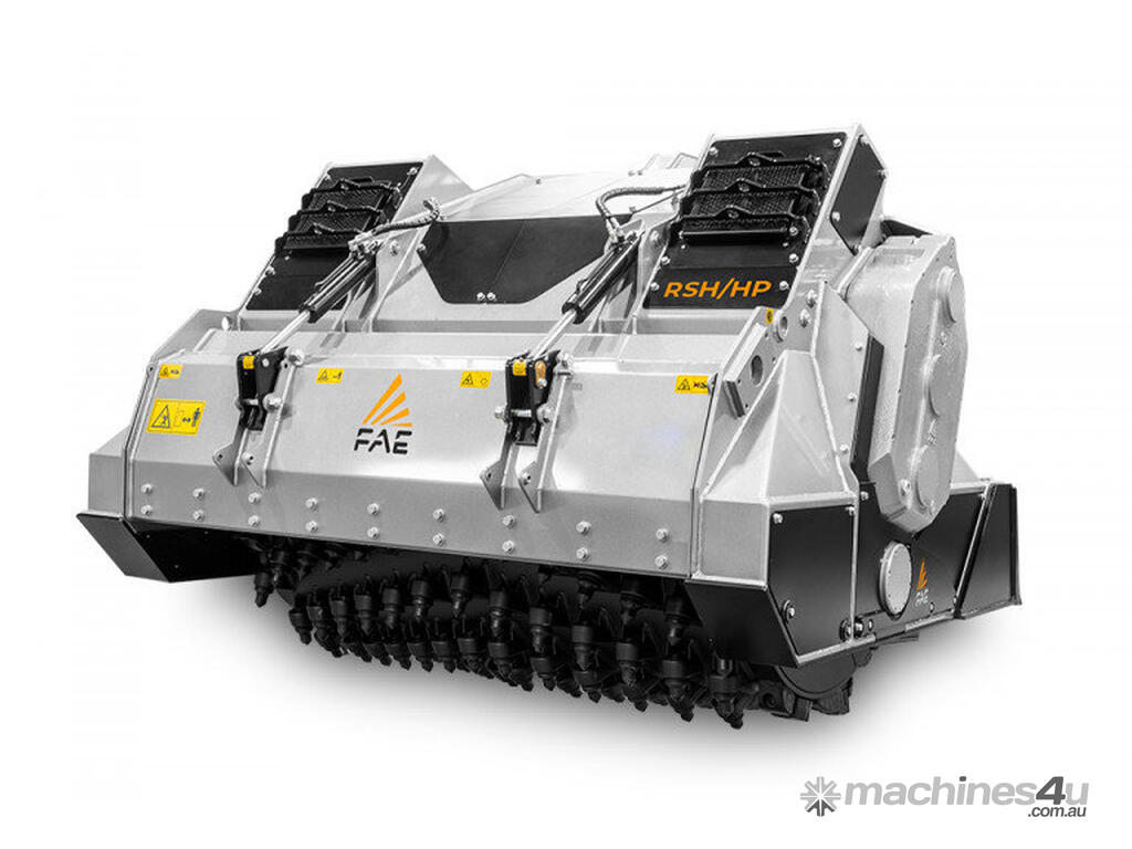The RSH/HP is the ultimate FAE stone crusher, the ideal solution for crushing slabs of rock and stones of up to 50 cm in diameter and at a depth of up to 50 cm. It is compatible with tractors of between 360 and 500 HP, and has a working width of 260 cm.