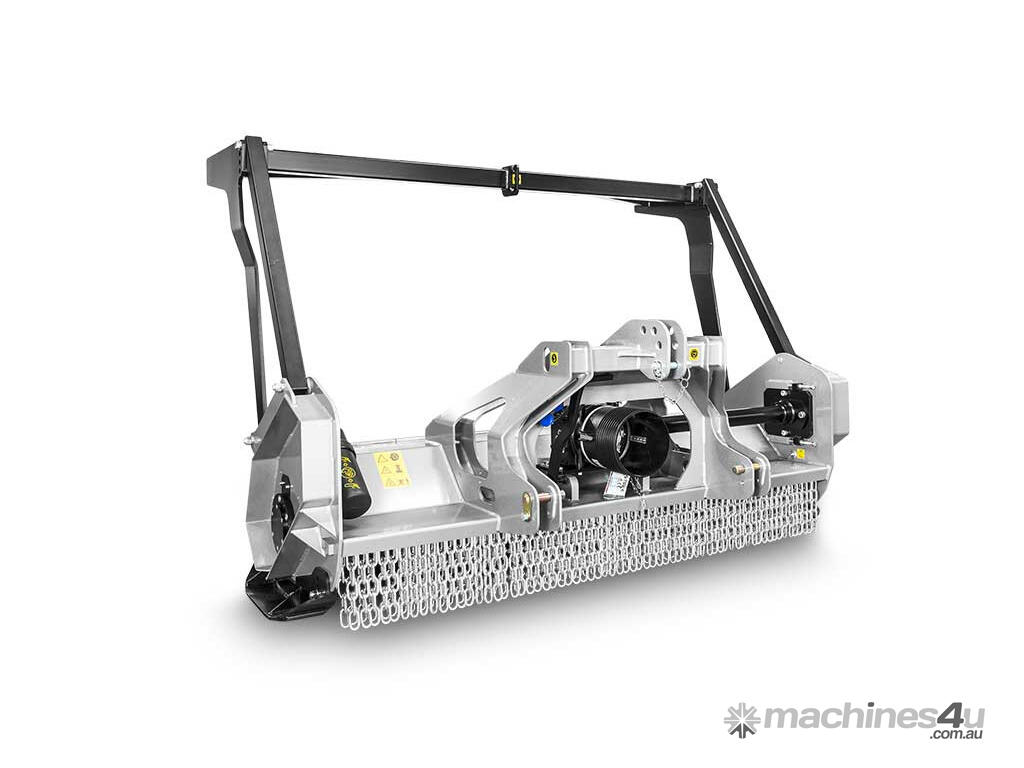 Fixed-tooth mulcher for low profile tractors.