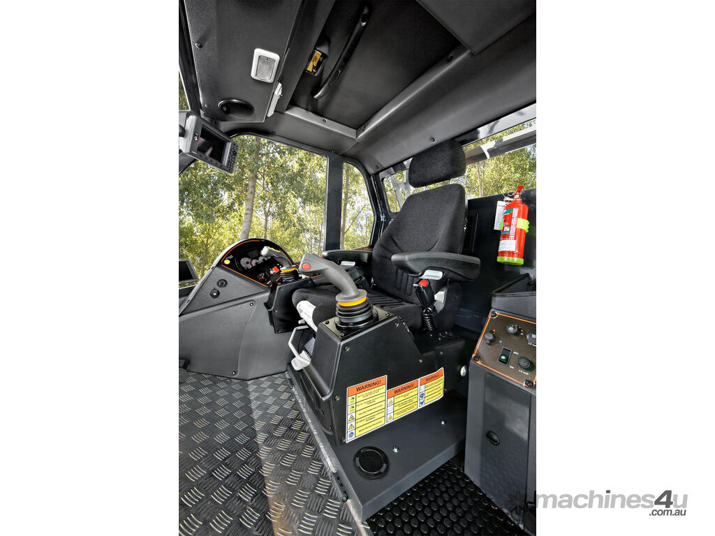The robust frame and the oscillating undercarriage with sealed and lubricated track chains and dozer-style rollers, guarantee an extended lifetime of the machine, thus reducing maintenance and operating costs. The operator’s cab is very comfortable with excellent visibility, while the ordinary maintenance is easy and fast thanks to the perfect access to all components.