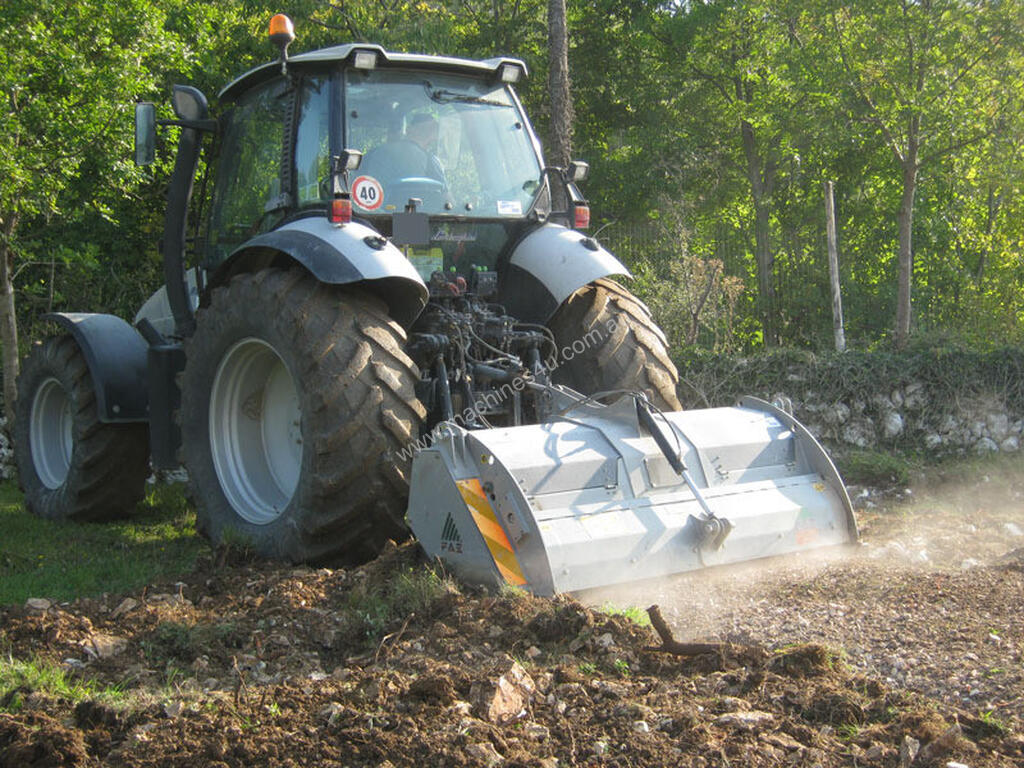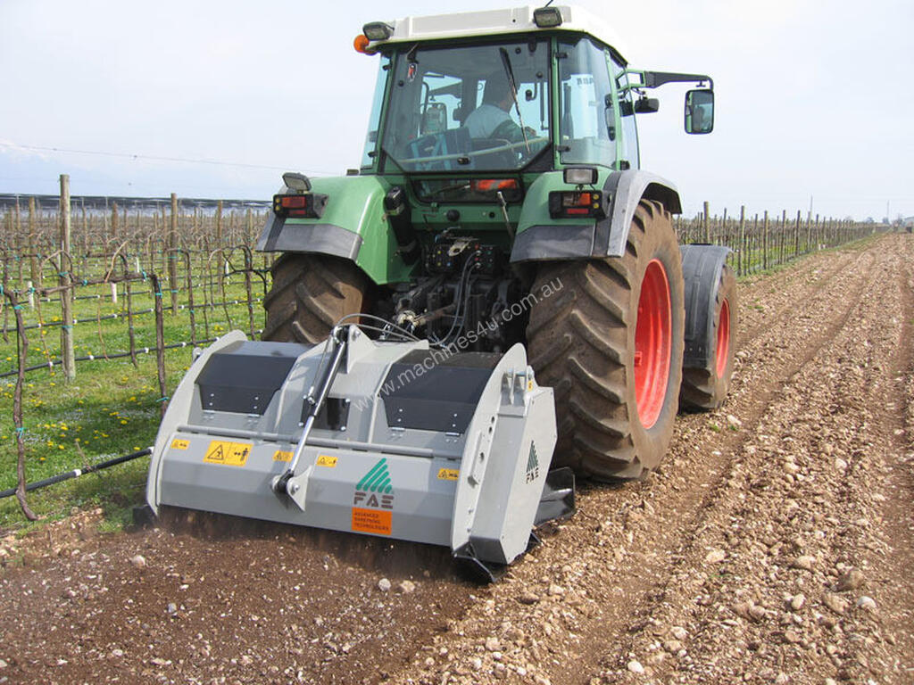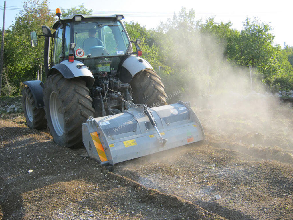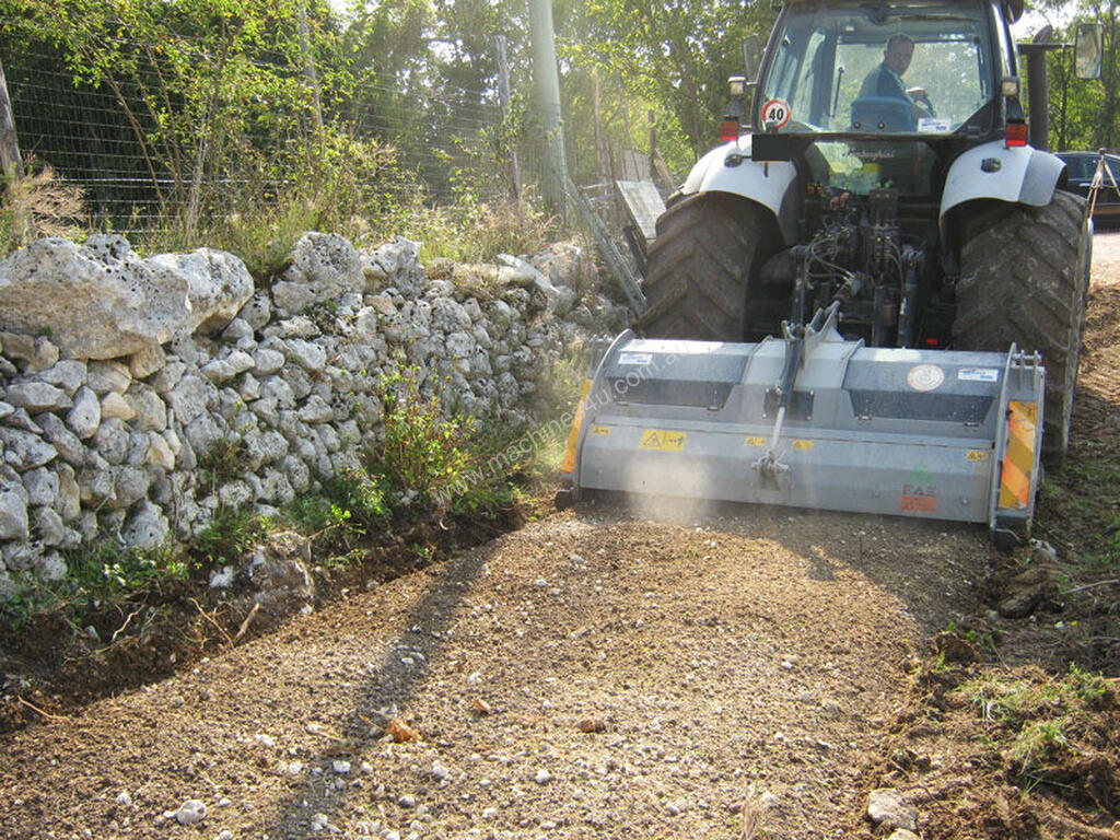 Description: Stone crushers with a max working depth of 15 cm/6 for tractors between 80 and 150 HP.