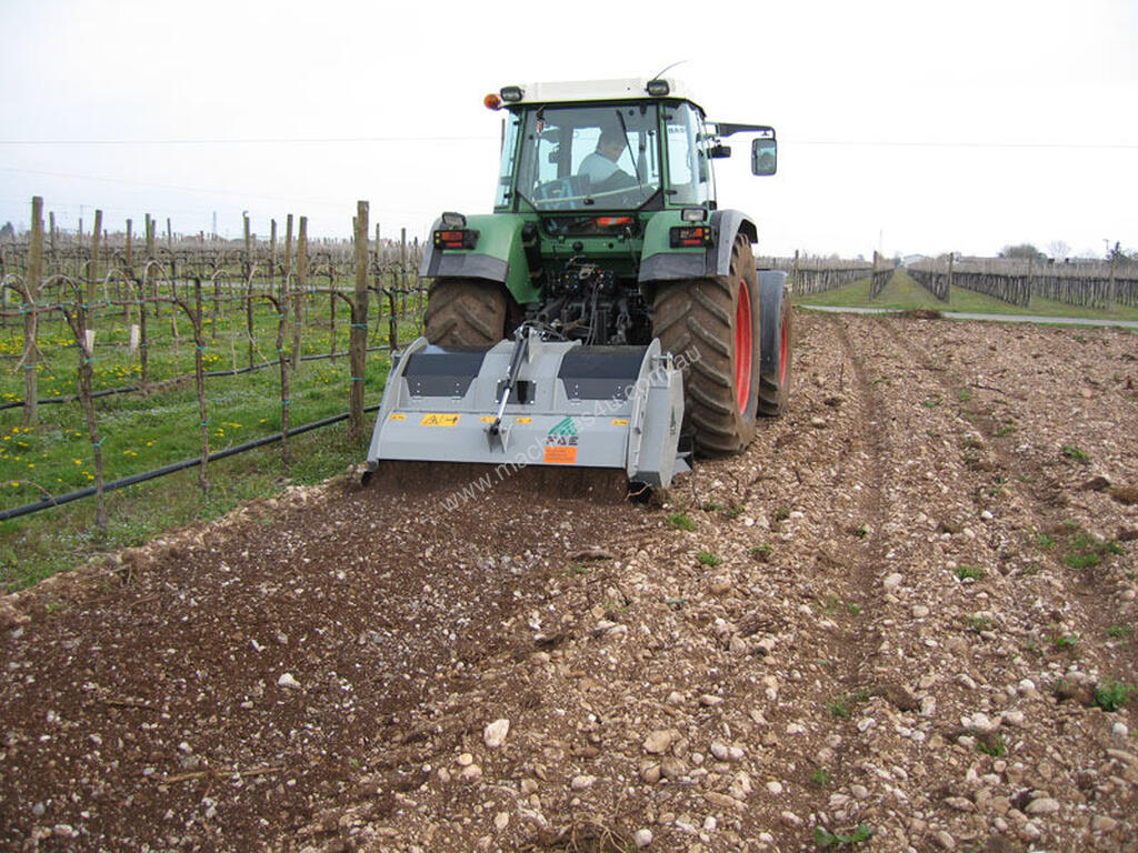 The STCL is the entry level model in the rock crusher line. Its small dimensions and lower weight make it highly versatile. It is designed and built for agricultural soil reclamation in loose and superficial rock. Its small size makes it ideal for use in vineyards and orchards. The internal counter knives are adjustable and determine the size of the final product. The rear door is designed to doze the material as they leave the crushing chamber.