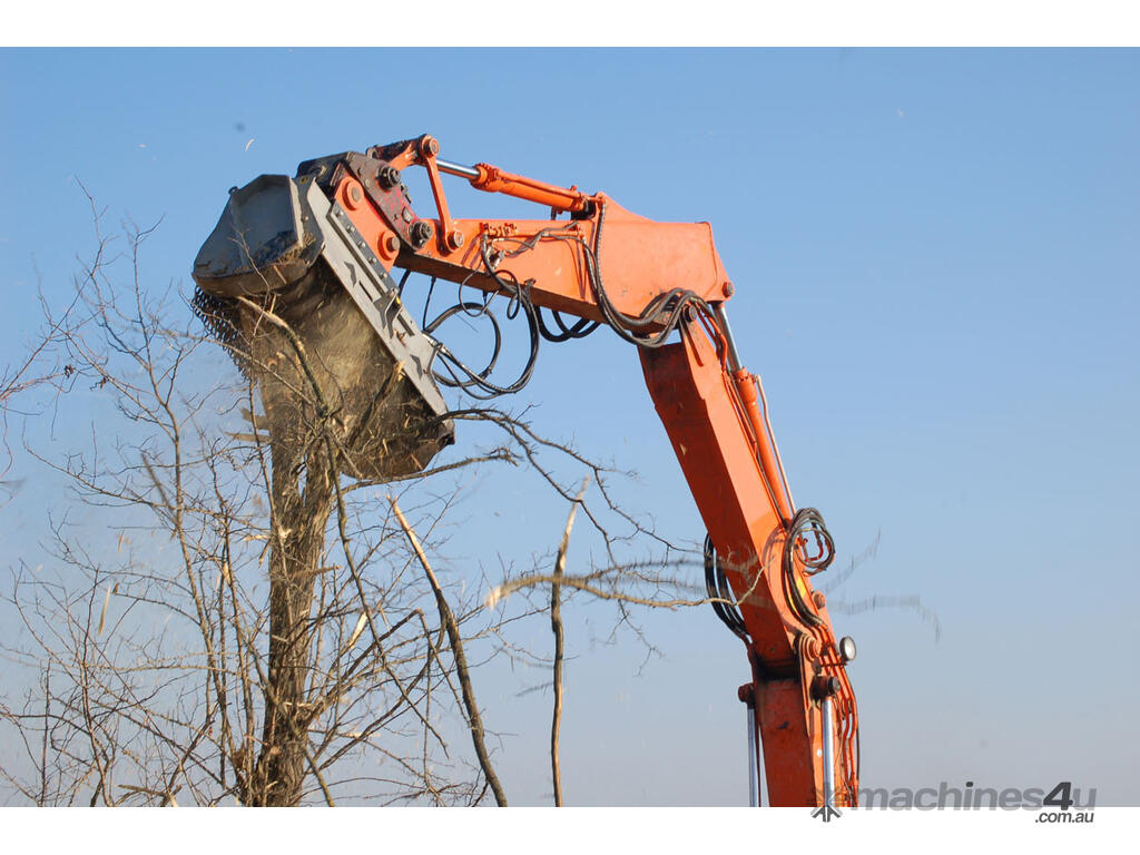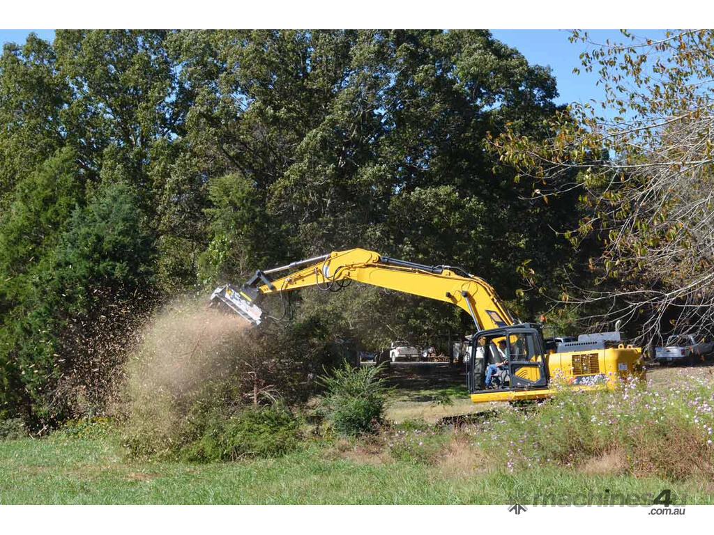 Forestry mulcher with fixed tooth rotor for excavators.