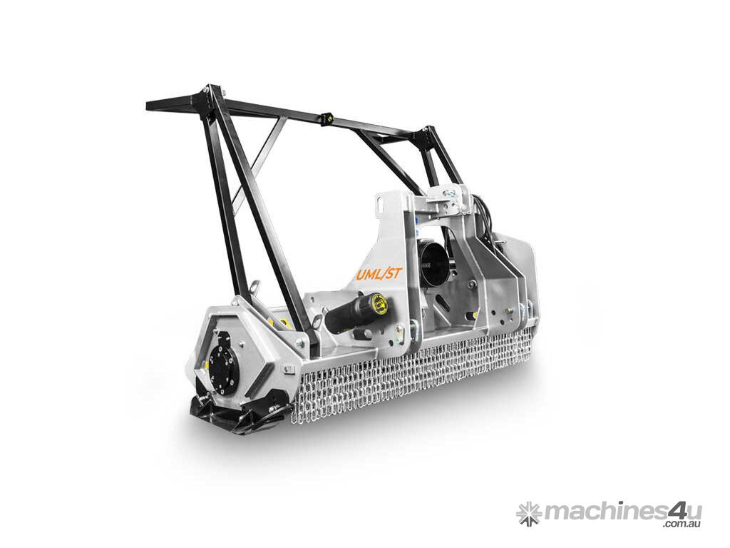 The UML/ST is designed and built to be used with tractors or low-power mechanical PTO vehicles ( 50 to 110 hp) for all shredding work involving bushes, branches, and trees with max. diameter of 20 cm.