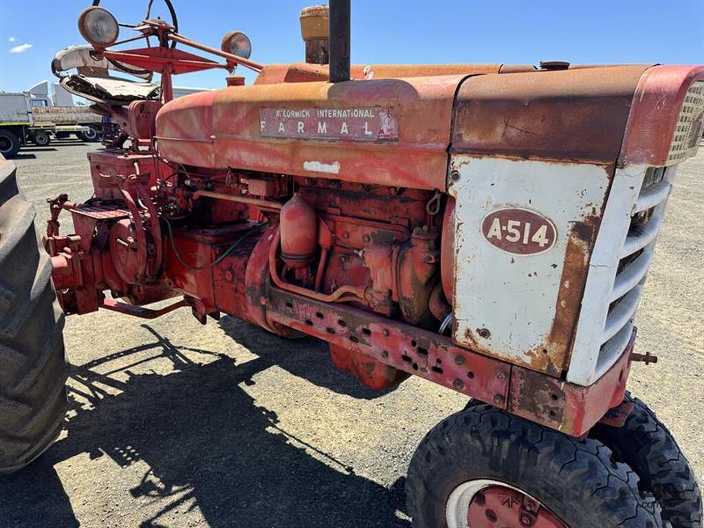 FARMALL A514 TRACTOR, S/N: ###, E/N: ###, HOURS UNKNOWN. LOCATION: HALFERTY STREET, EMERALD, QLD 4720. INSPECTIONS & COLLECTIONS: MONDAY TO FRIDAY, 8AM TO 4PM. ENQUIRIES: BRYTON VIRGO ON OR BRYTONEMERALDAUCTIONCENTRE