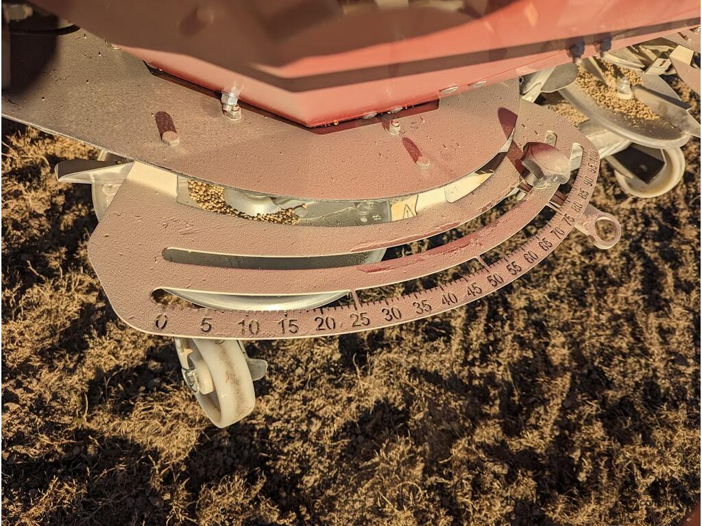 For optimal use and precise control, this machine boasts an easy-to-use adjustment scale, variable drop point, and customizable disc flaps.