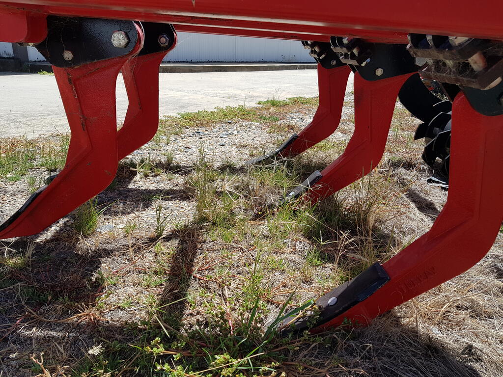 The FARMTECH CZ-M Chisel Plough is available with 7, 9, 11 or 13 tines and is mounted to tractors by a three-point linkage system. In comparison with other chisels, non-soldered steel rolled iron is used for the tines.