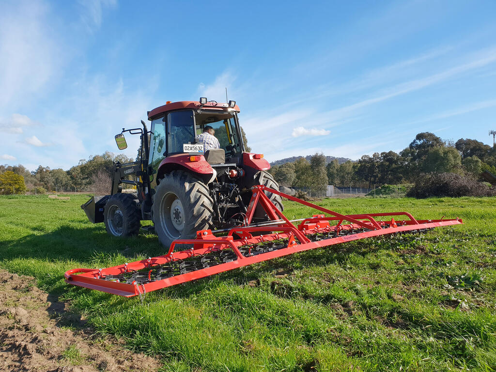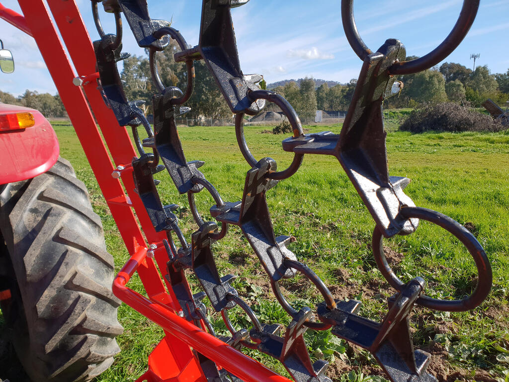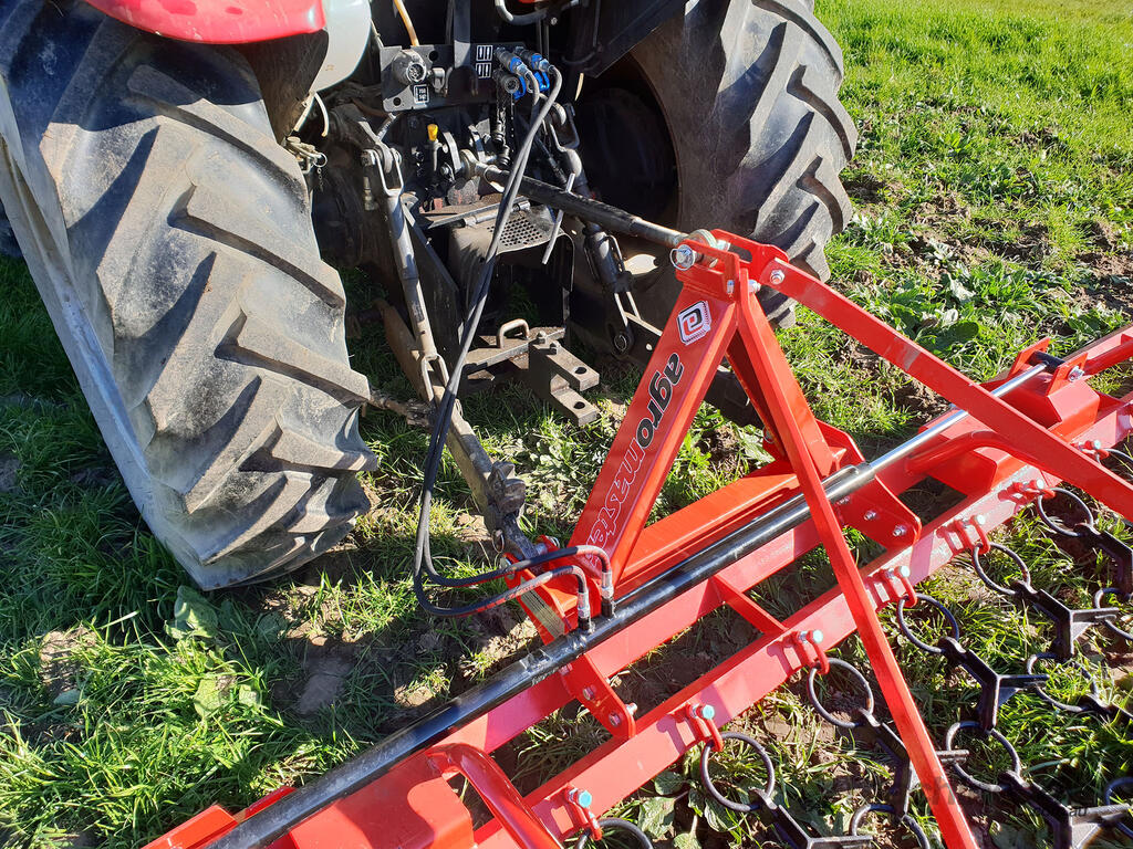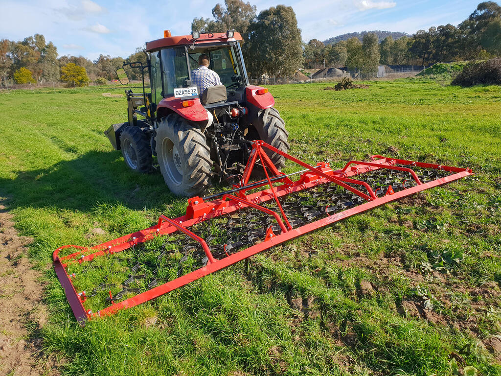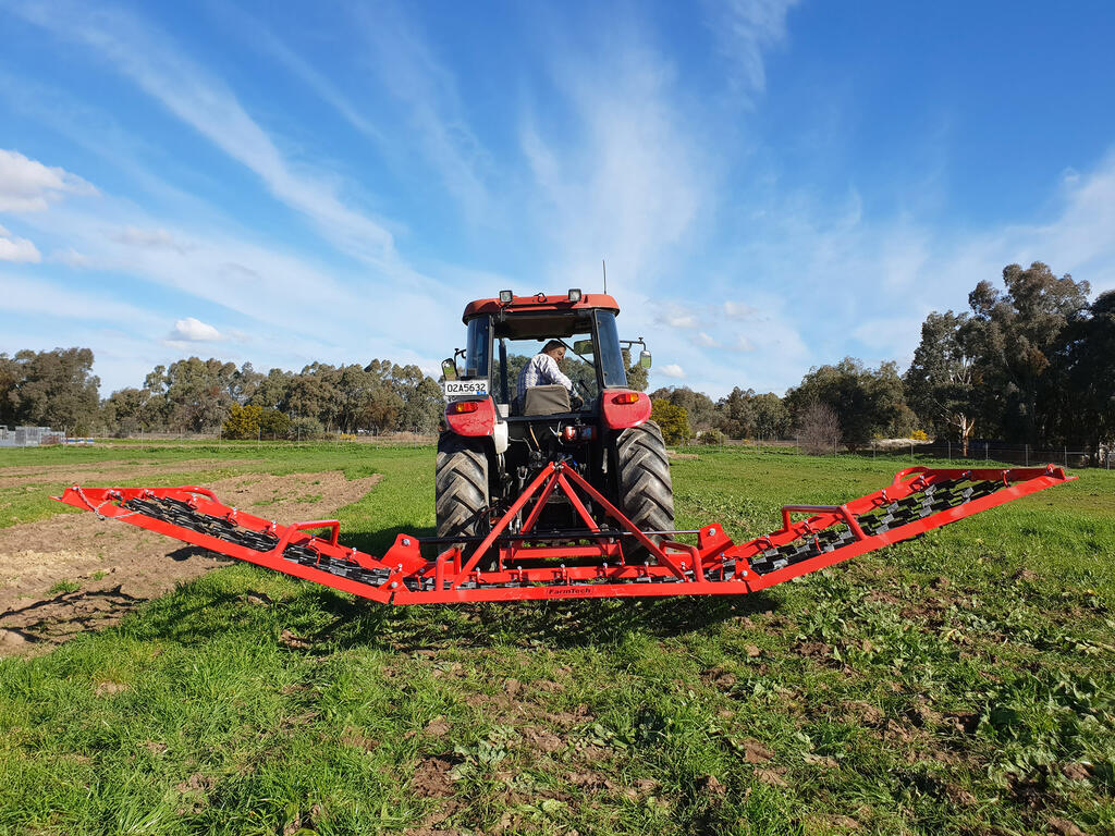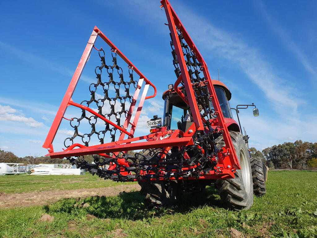 The Farmtech DT HK Chain Harrows are highly versatile in their design and performance. A harrow mounted on the foldable drag chassis with tines facing down and forward will deliver aggressive soil stirring action and deep penetration. Flip the harrow over with tines facing up and you get almost no cultivating action.