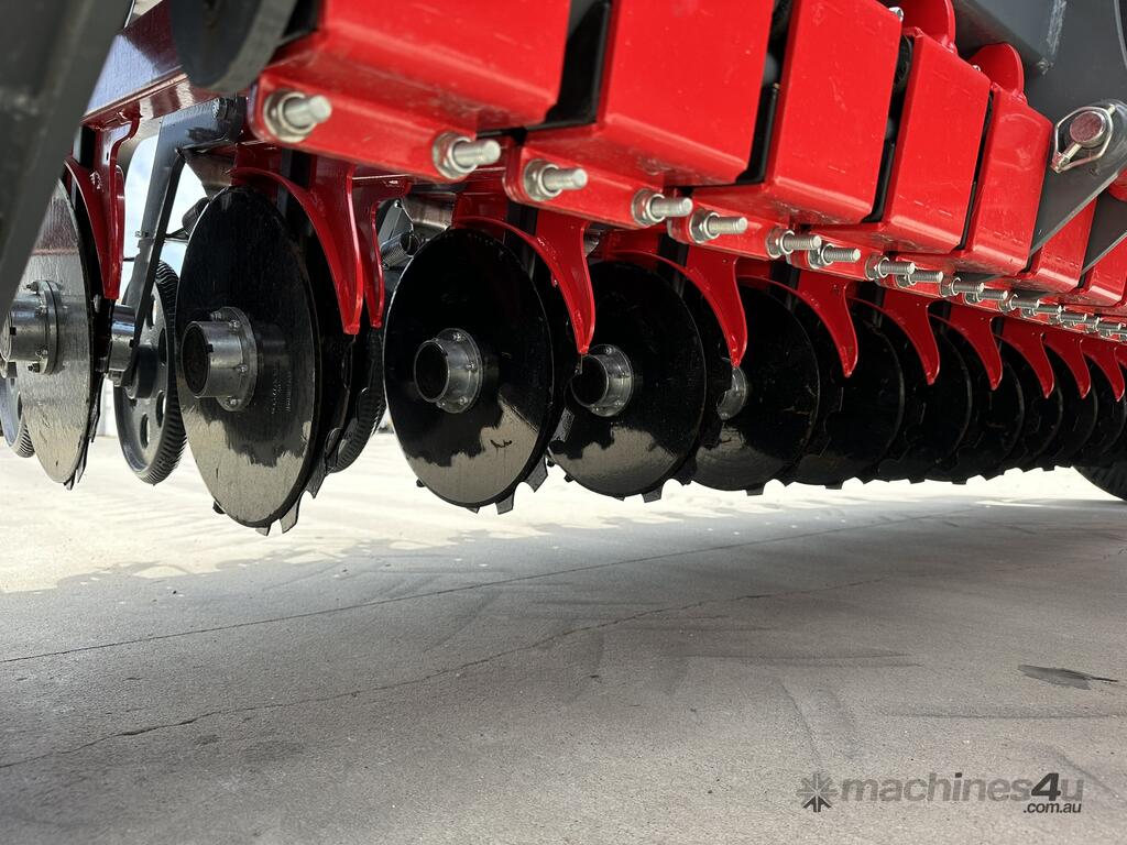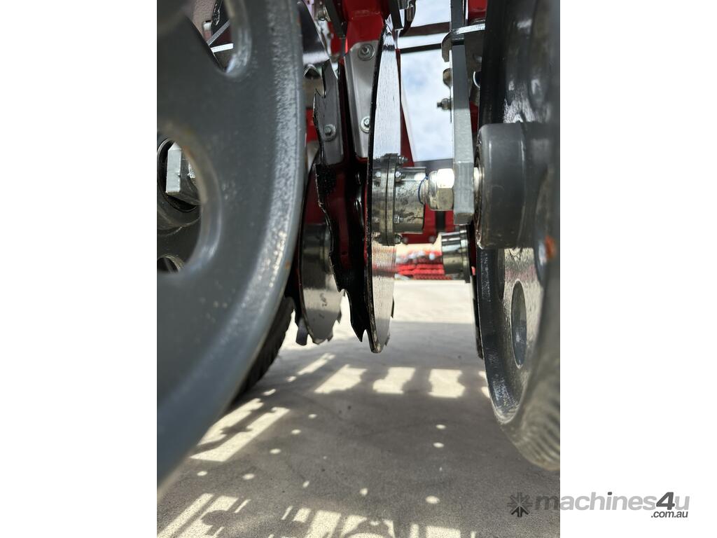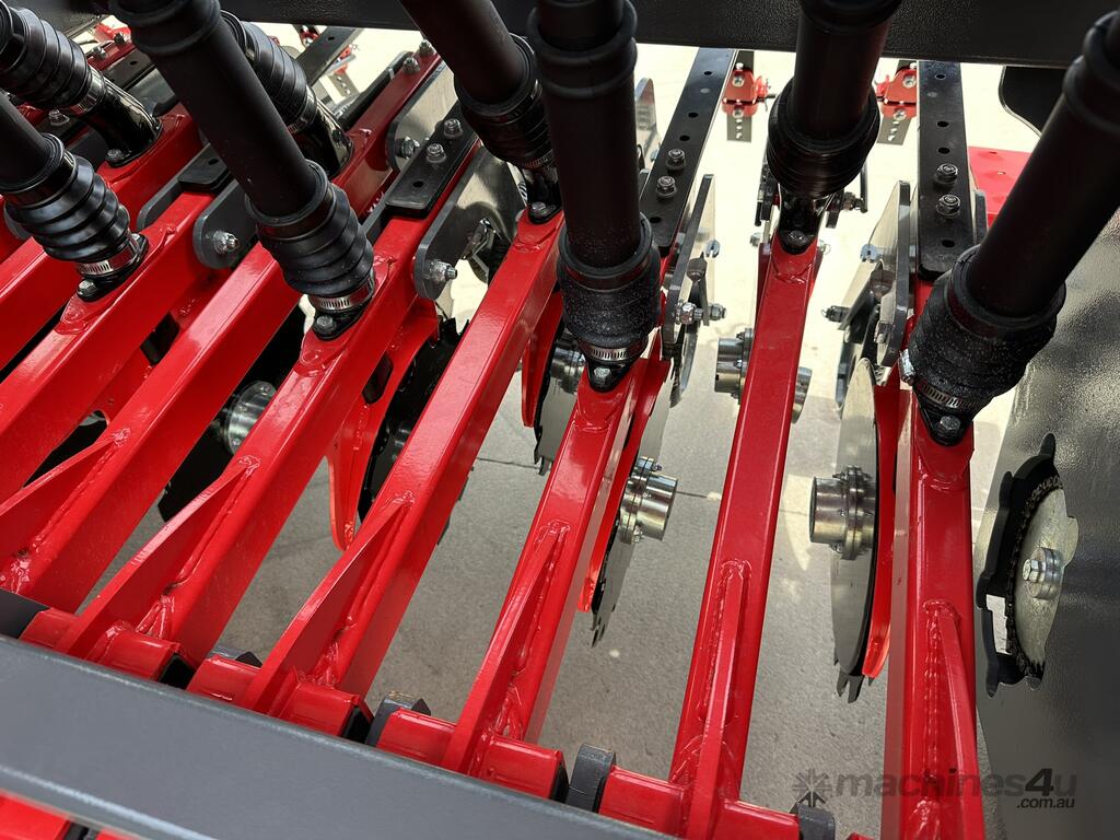 -The double disc row arms are mounted individually to a triangular mounting block for reduced component movement.