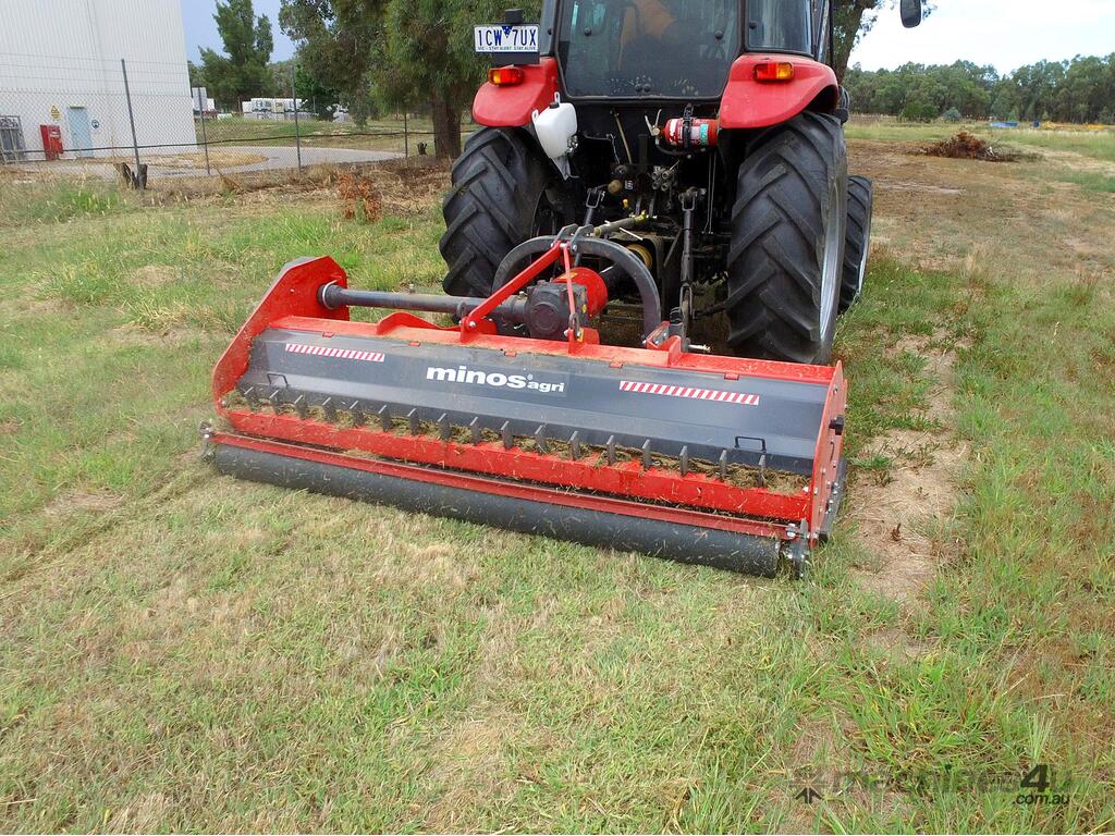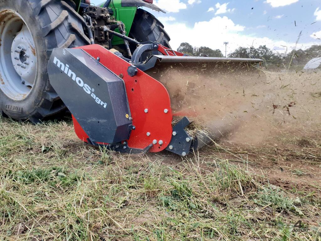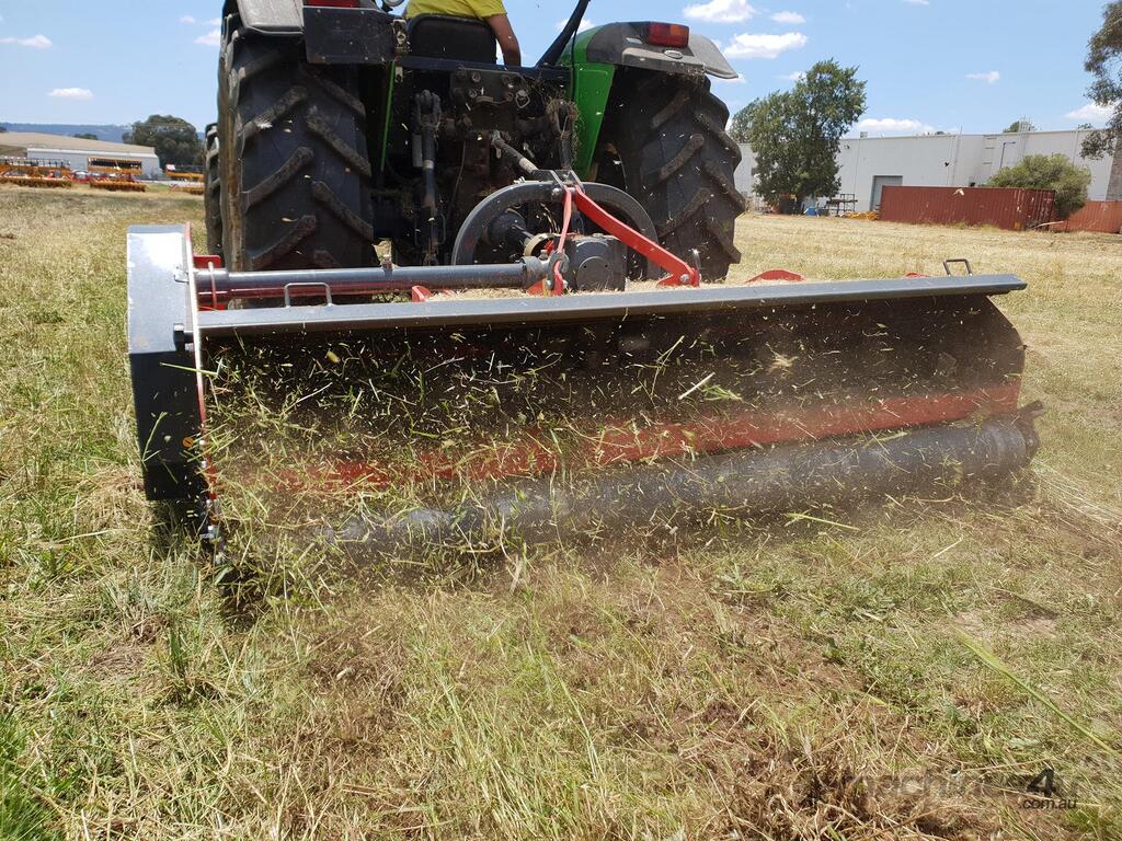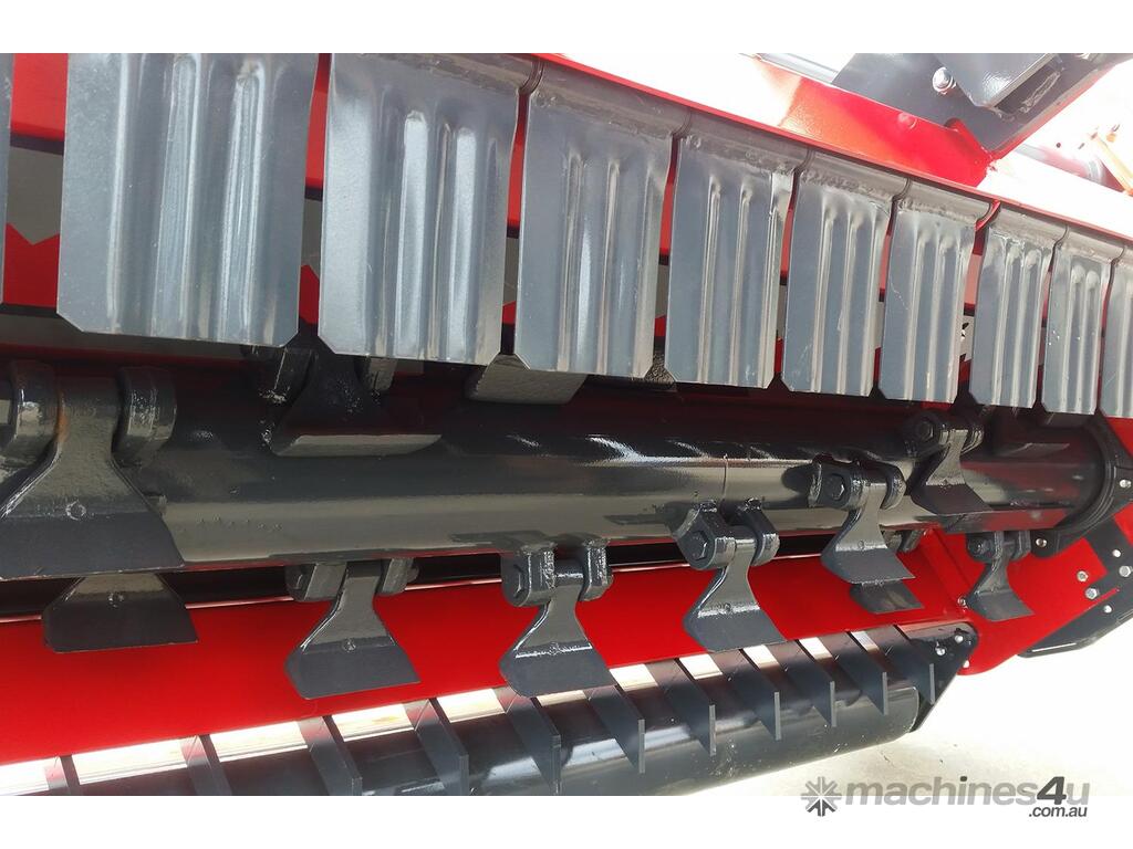 Working widths are available from 1200mm to 2600mm. Utilises a heavy-duty rotor with hammers, heavy-duty body, rear rakes and an adjustable rear roller that combined helps to preserve cutting height, blade strength and balance even on uneven soil.