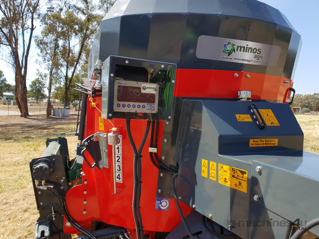 Vertically operating auger system ensures grinding and cutting of round and square bales thanks to the custom alloyed and custom designed knives on it and mixing then homogenously with other rough and thick feed. Thanks to special design of auger and the body, there are no blind points on the machine and therefore no feed remains in the bucket after discharge. This special design required much lower power with the durable transmission box system used. Thanks to electronic digital scale system available optionally, the feed loaded in the machine may be weighed with high sensitivity and rations are prepared correctly.