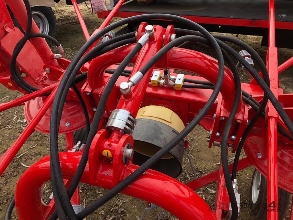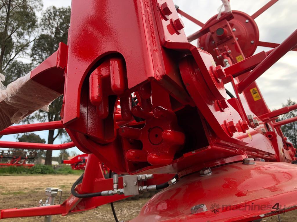 FARMTECH Tedder spreads mowed fodder crops and ensures rapid drying without having fodder crops to lose their nutritional value; thus allows multiple harvests within the year since fodder crops are removed in a short period of time. It saves time and labour with its high range of work and saves fuel with is low power demand. It has highly maneuverable wheels. Maintenance and repair of the machine is quite easy thanks to its simple structure. The machine is folded into the road mode easy thanks to the hydraulic folding system; thus, total length of the machine is minimized for safe transportation by folding. Machine width is less than 3 m when in road mode.