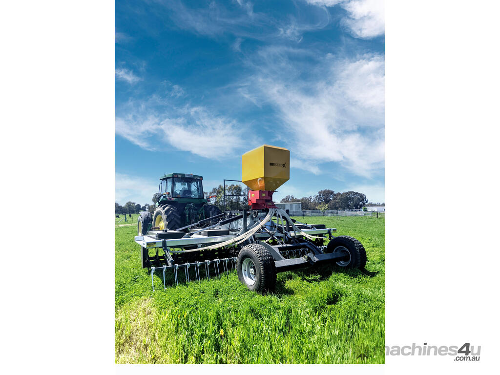 This seeder comes with eight outlets that dispel seeds with the help of twin high-capacity air fans to propel them through 25mm seed hoses