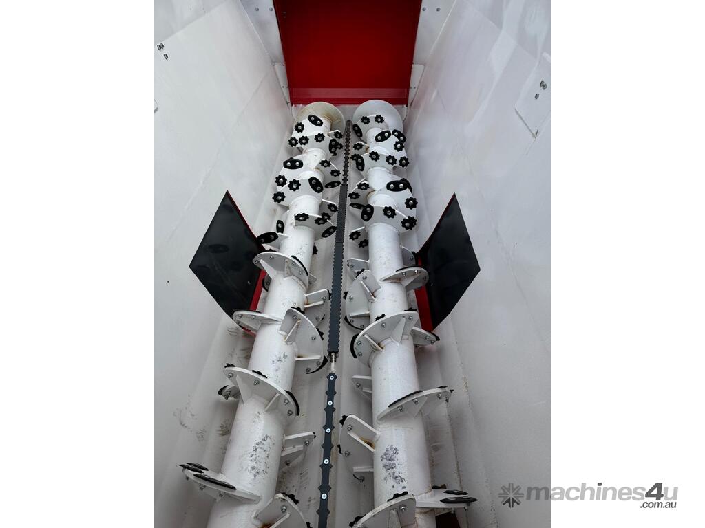 In addition, thanks to numerous knives located on the augers grinding process is performed. Mixed materials are discharged in the animal feeders at the desired quantity from the side of the machine by means of a pallet transmitter moved by a hydraulic motor.