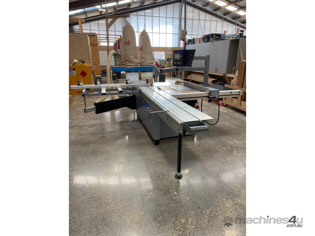 Delivers straight line precision even under heavy loads. Panel saw with motorized up/down.