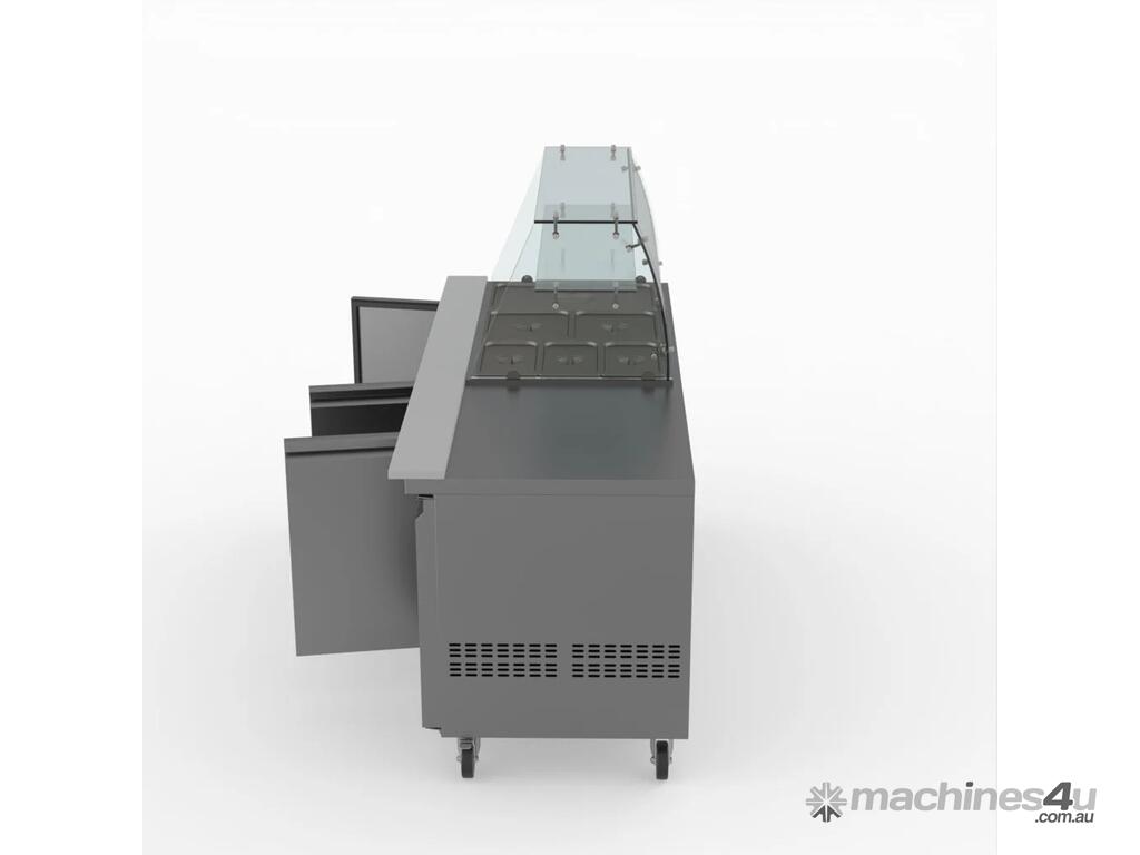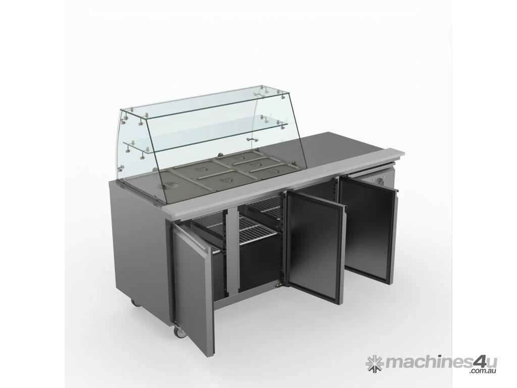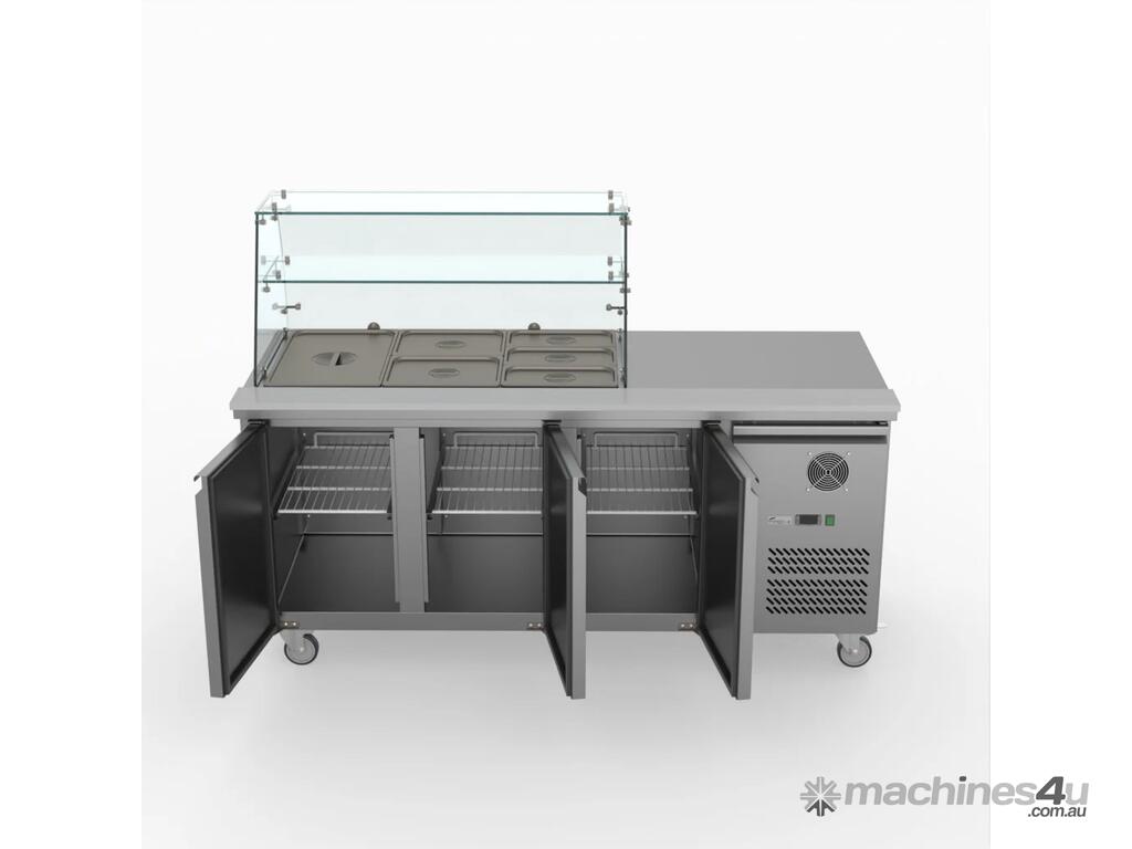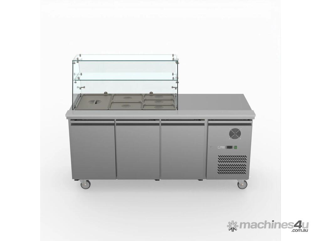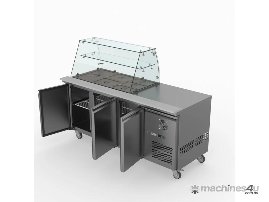 FED-X Three Door Salad Prep Fridge with Curve Glass Top - XTHP3100SALGC