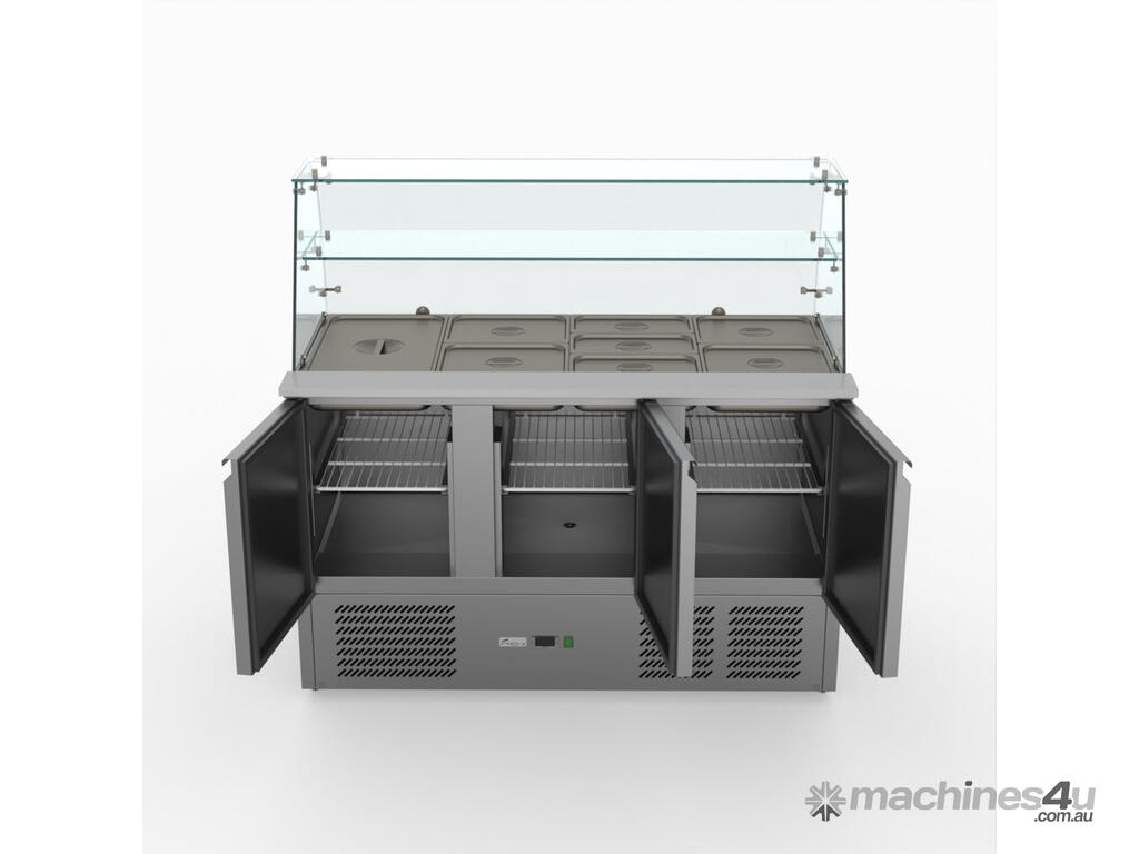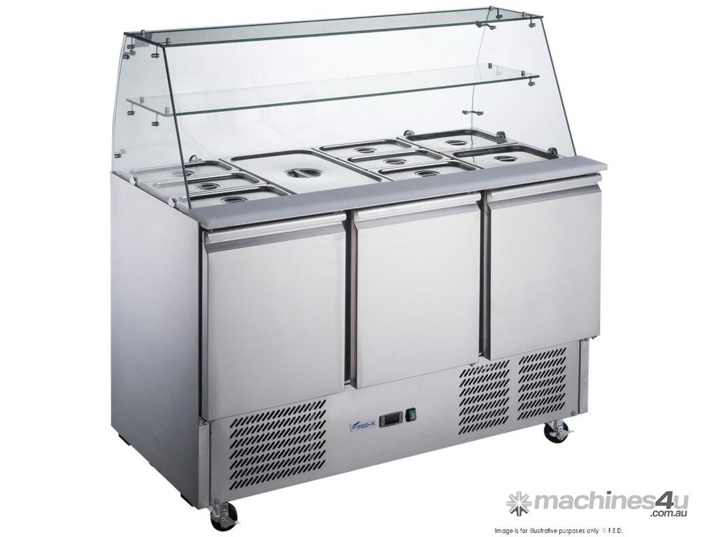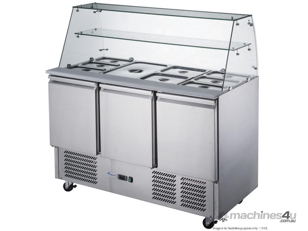 FED-X Three Door Salad Prep Fridge with Glass Top - XS903GC