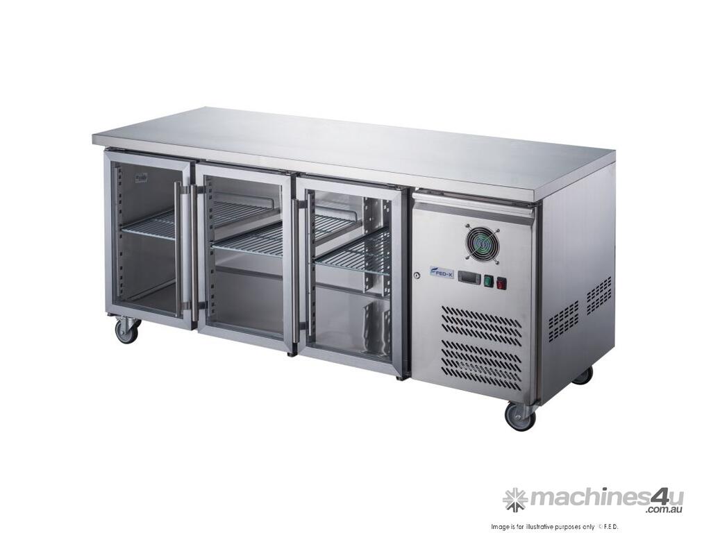 FED-X Three Glass Door Bench Fridge Stainless Steel - XUB7C18G3V