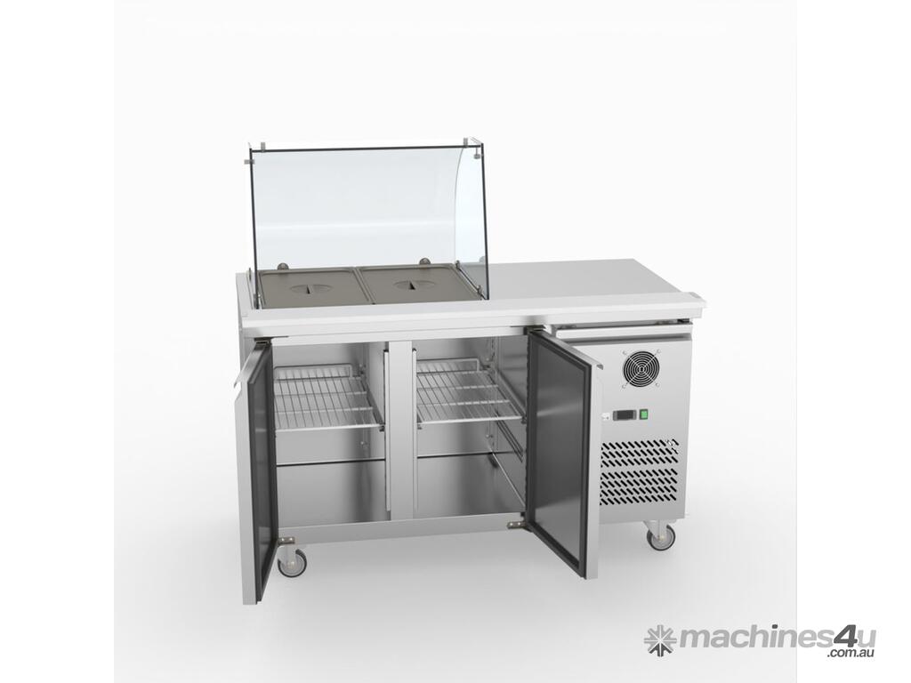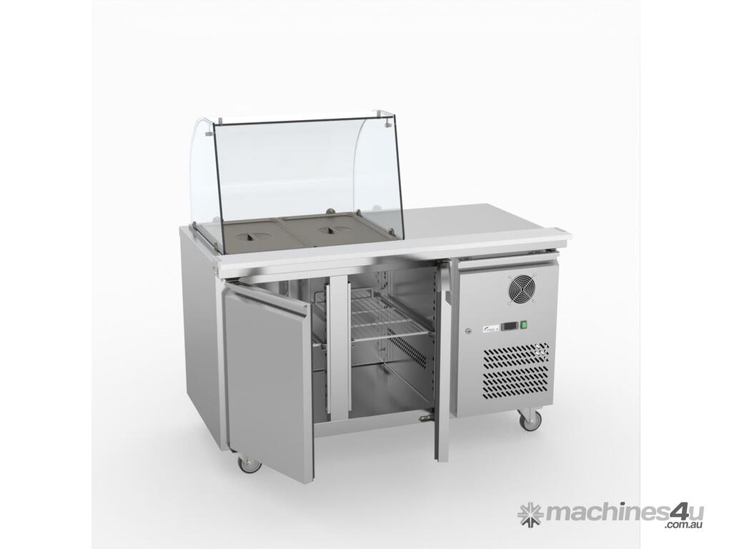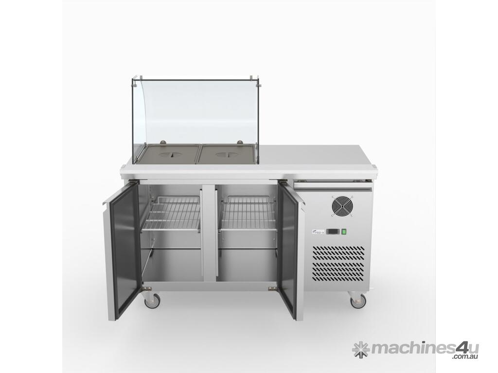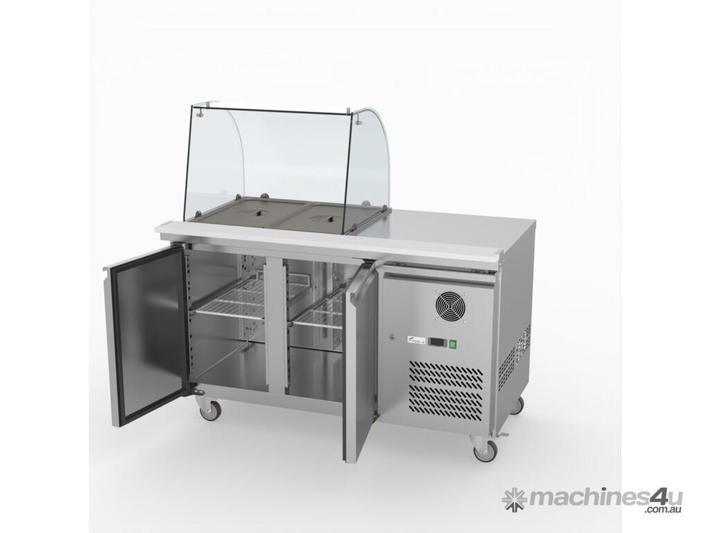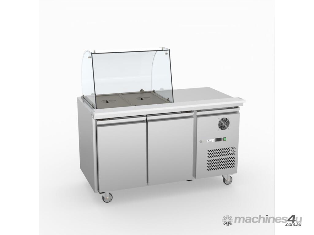 FED-X Two Door Salad Prep Fridge with Curve Glass Top - XTHP2100SALGC