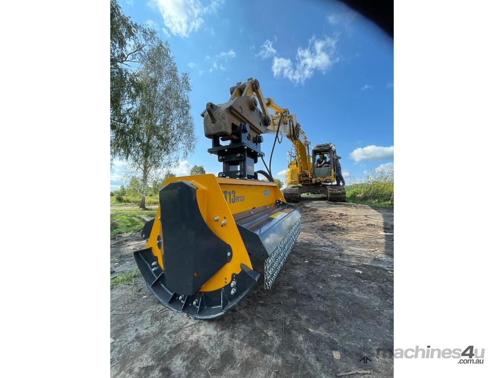 The FEMAC T13-FS130 REV Hydraulic Mulcher has a cutting length up to 1300mm and cutting capacity of up to Ø 120mm. Suitable for drainage working, land clearance and mulching.