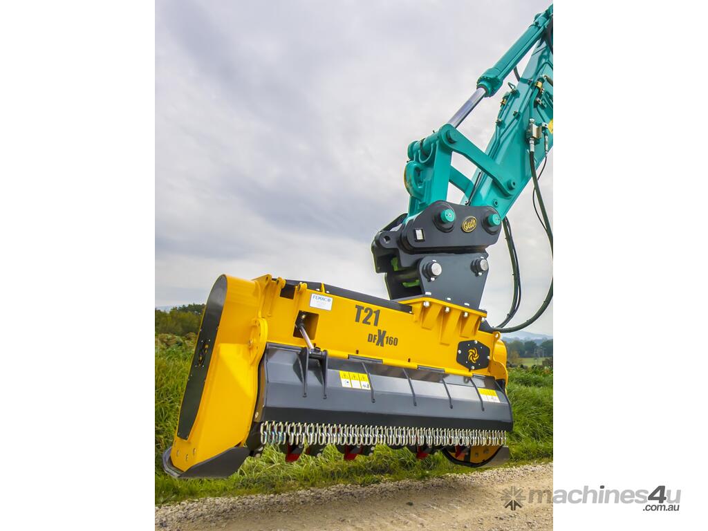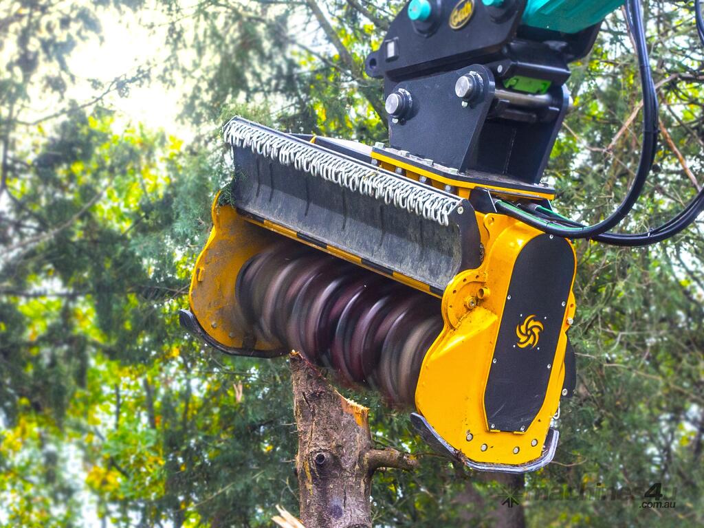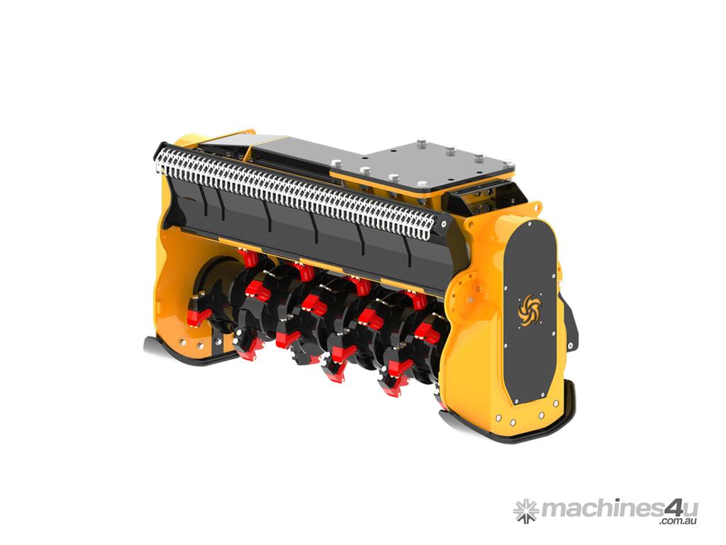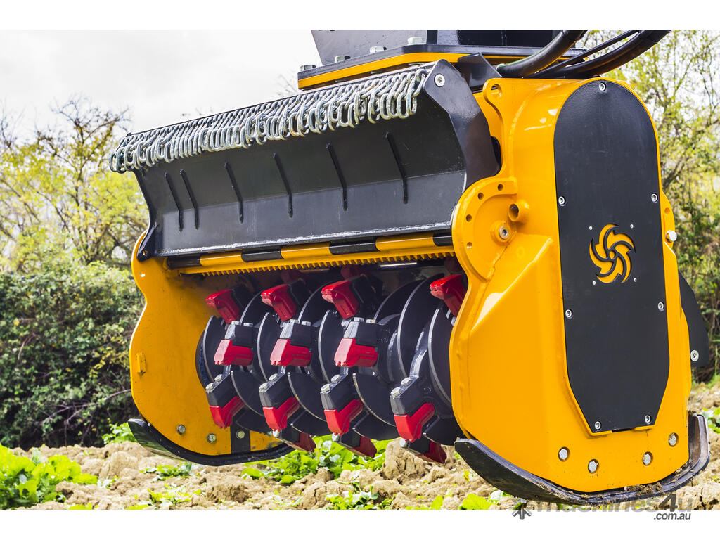 Designed for the heaviest duty mulching work. Featuring patented DFX rotor, this unit can mulch up to 500mm thick trees with ease. The REV stands for reversible and the unit can be swept back and forth continuously cutting without lifting of the ground.