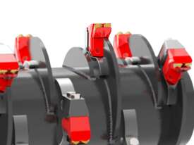 FEMAC Patented DFX rotor allows this mulcher to remove 500mm thick trees with ease. The reversible design allows the operator continuously cut, sweeping the unit back and forth without lifting of the ground.
