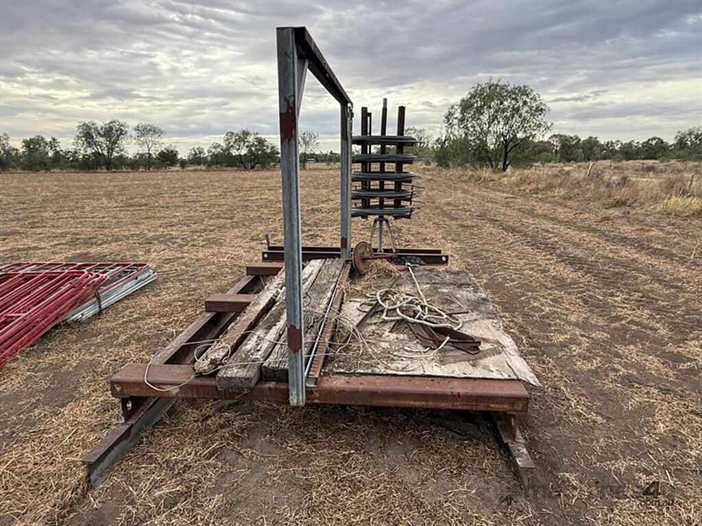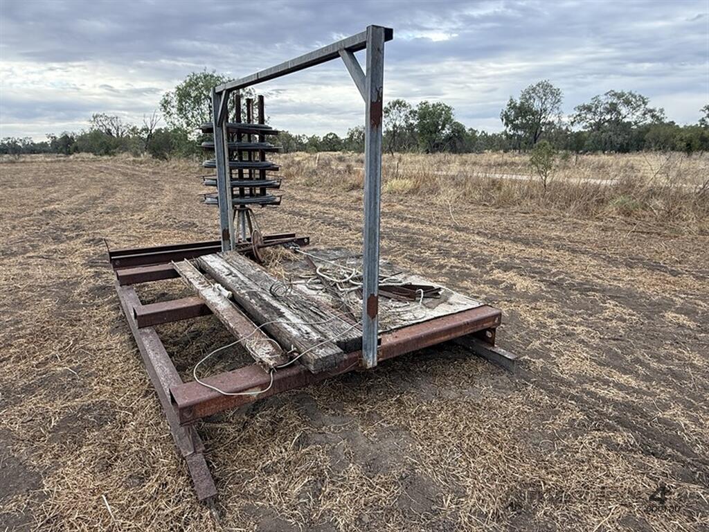 Old custom fencing rig. Wire holders etc. Available via MRE Online Auctions, located in Walgett NSW.