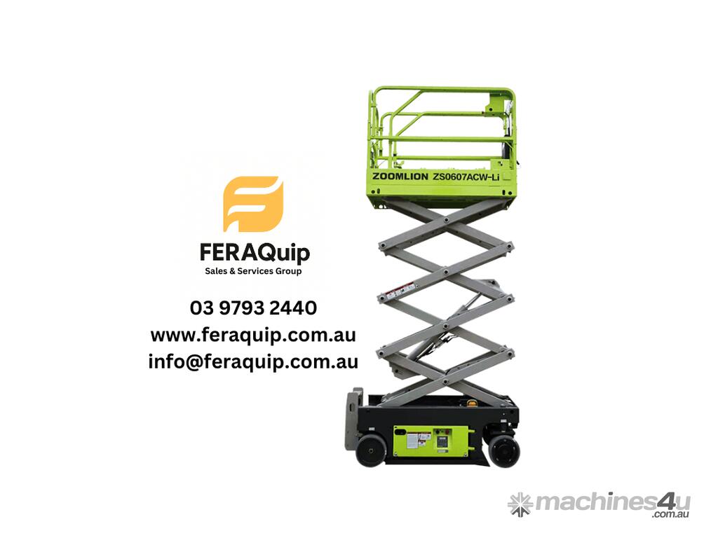 Electric powered scissor lifts, with work height ranging from 7.8m to 15.7m, providing high efficiency and safe operation around jobsites.
