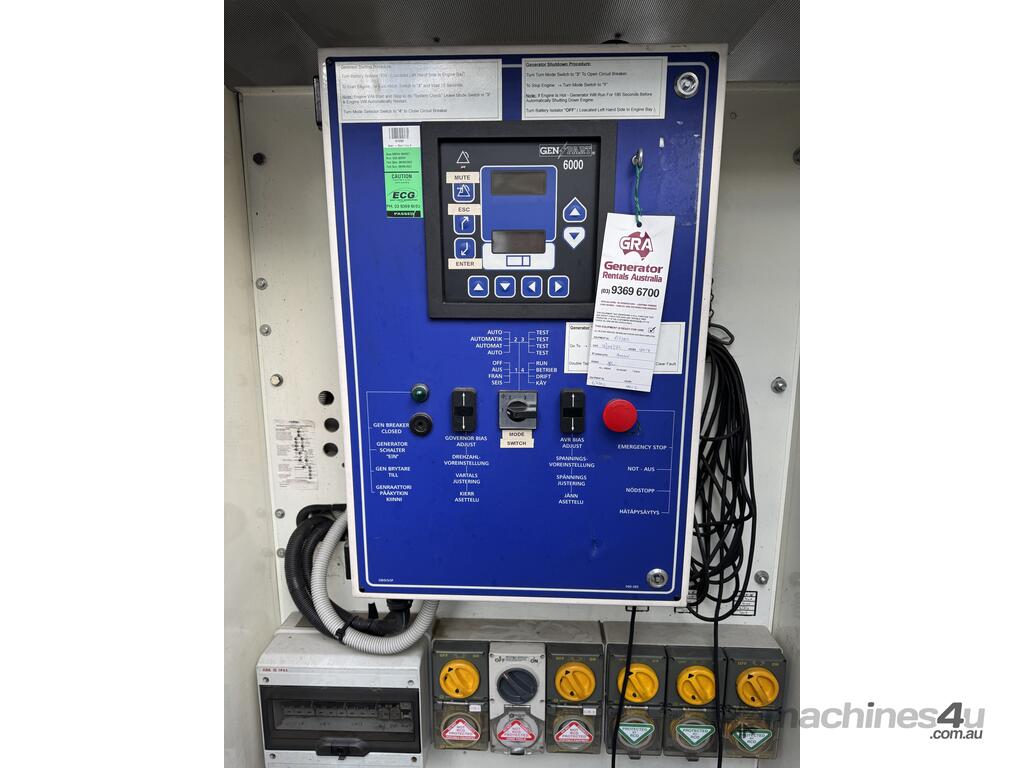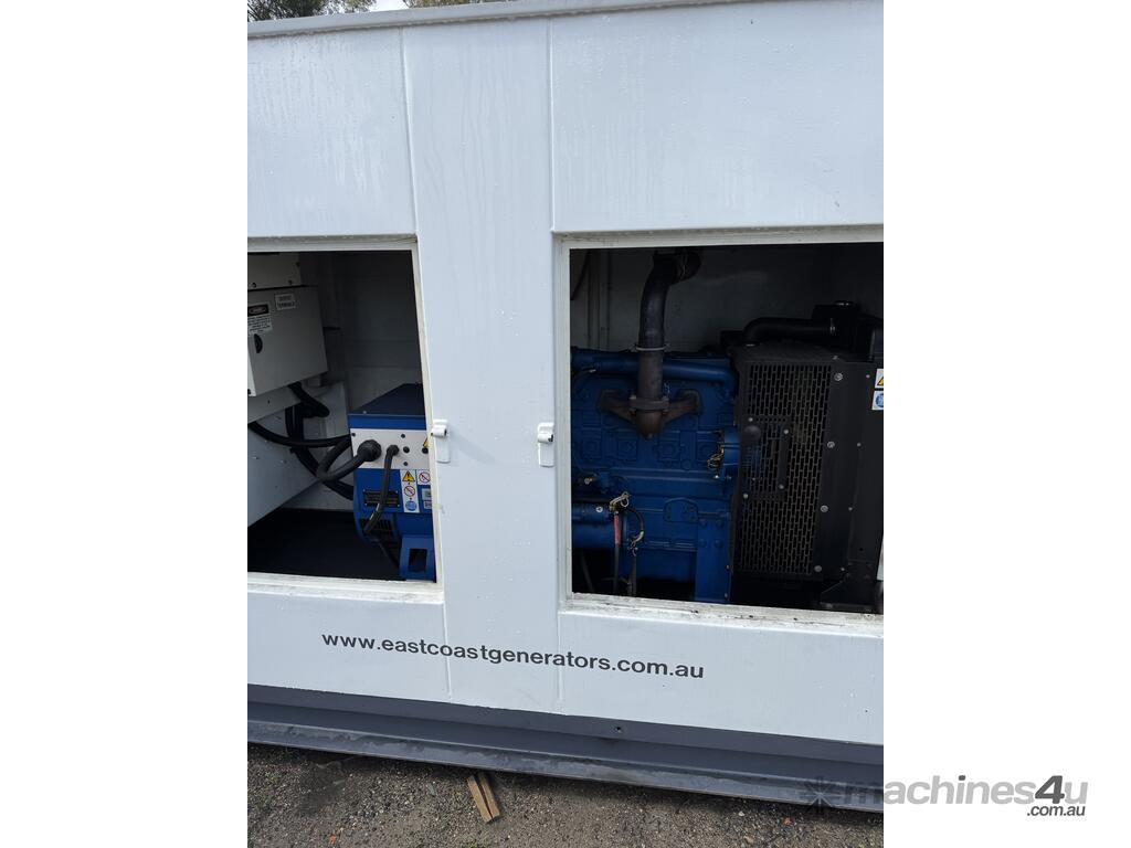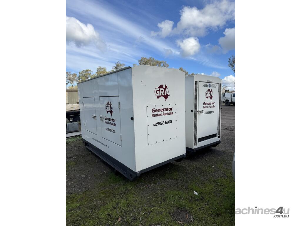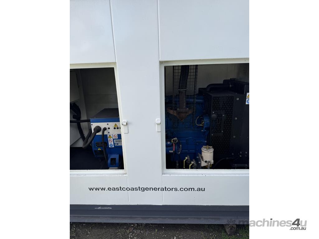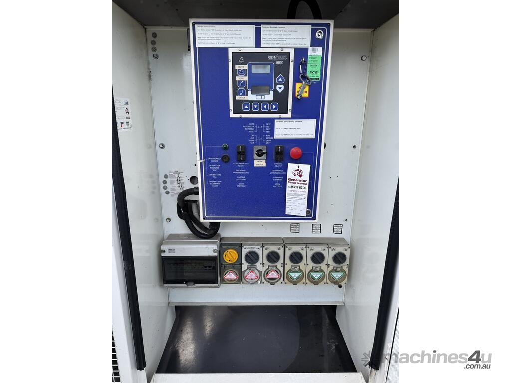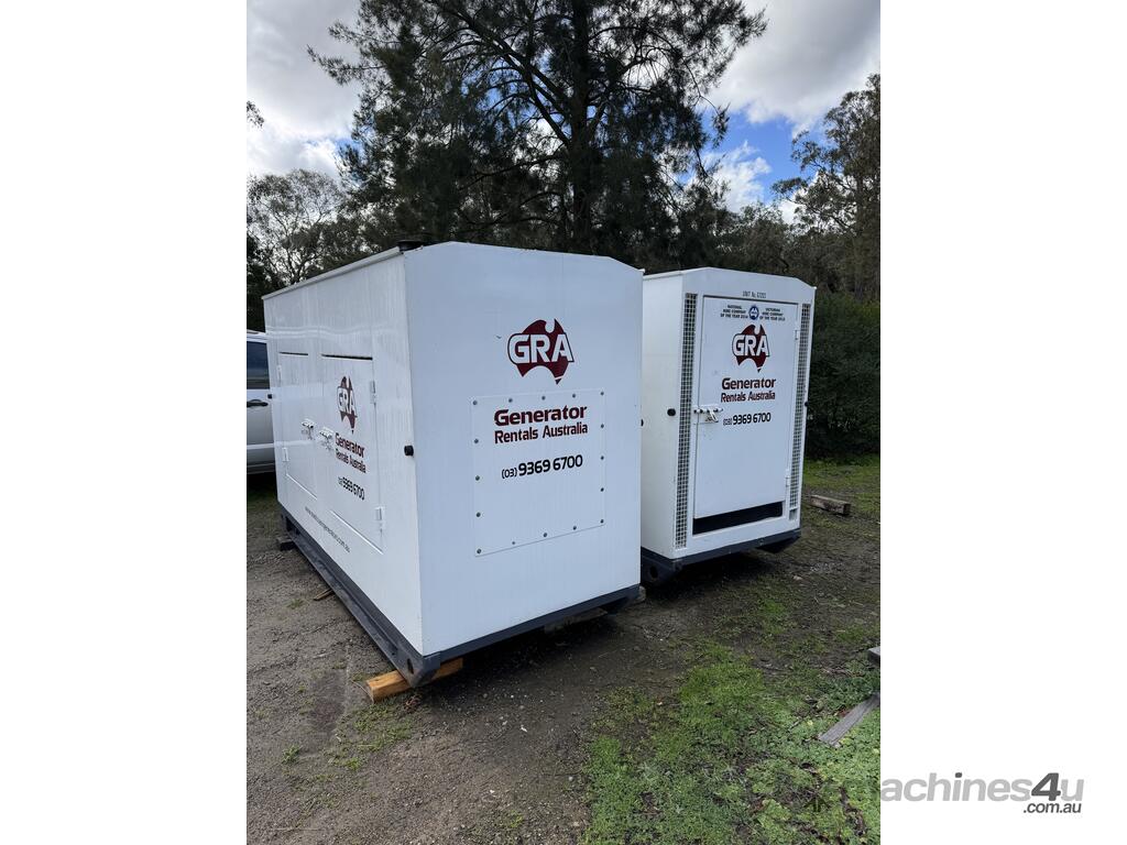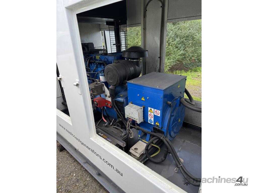 Generator FG Wilson 50kva 2 sets available, can be synced together, 4000 hours showing. Single and three phase outlets, fuel tank base, controller, circuit breaker and muffler mounted in sound reduced canopy. Sets have been load tested.