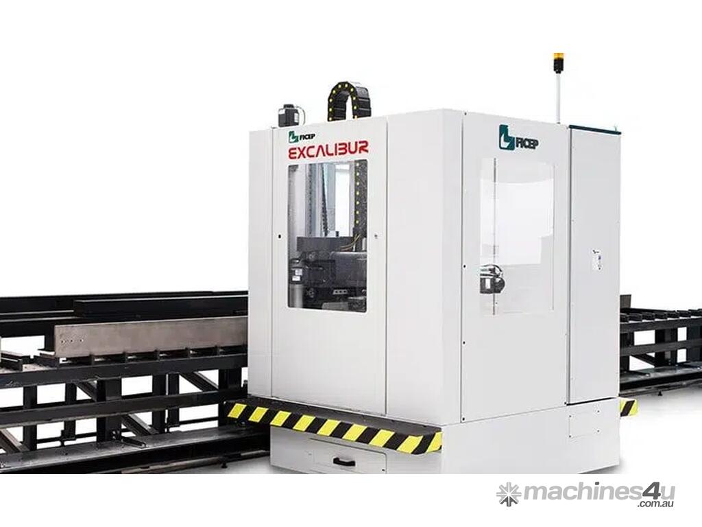 The EXCALIBUR features a unique auxiliary axis on the spindle, allowing operations to be performed without repositioning the machine cabin.