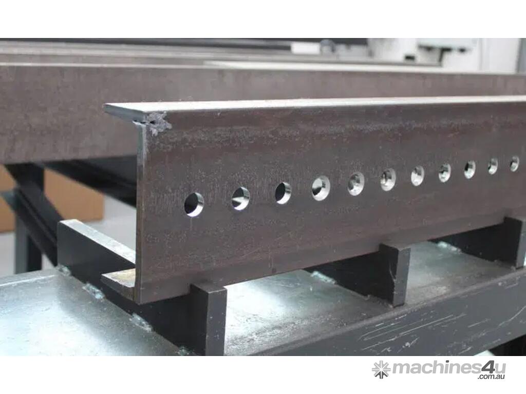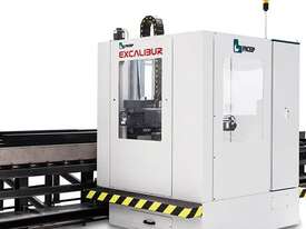 The EXCALIBUR uses an advanced travelling column drilling system, allowing the drilling unit to move along the length of the beam while the workpiece remains stationary.