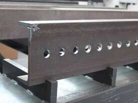 The EXCALIBUR uses an advanced travelling column drilling system, allowing the drilling unit to move along the length of the beam while the workpiece remains stationary.