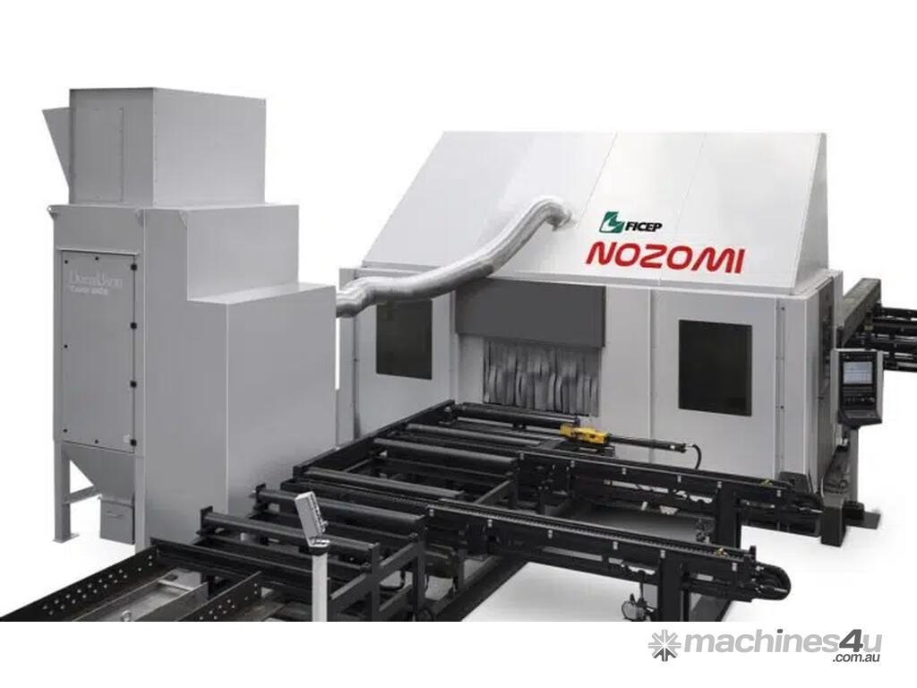 The FICEP NOZOMI is an advanced 9-axis CNC robotic plasma coping system designed for automated thermal processing of structural steel sections.