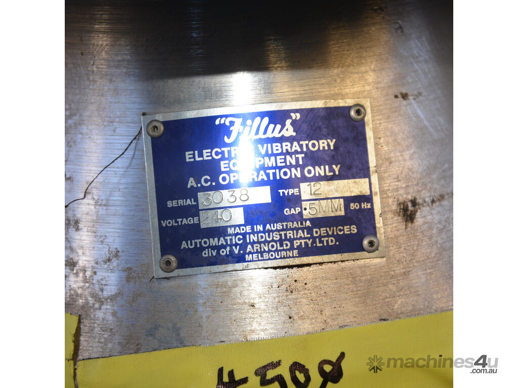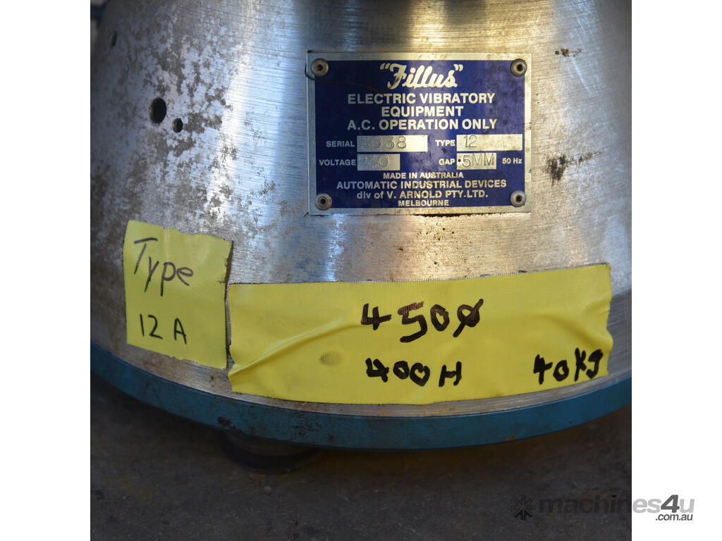 FILLUS TYPE 12 VIBRATORY ELEVATOR PARTS FEEDER BOWL 240V PLASTICS MACHINERY