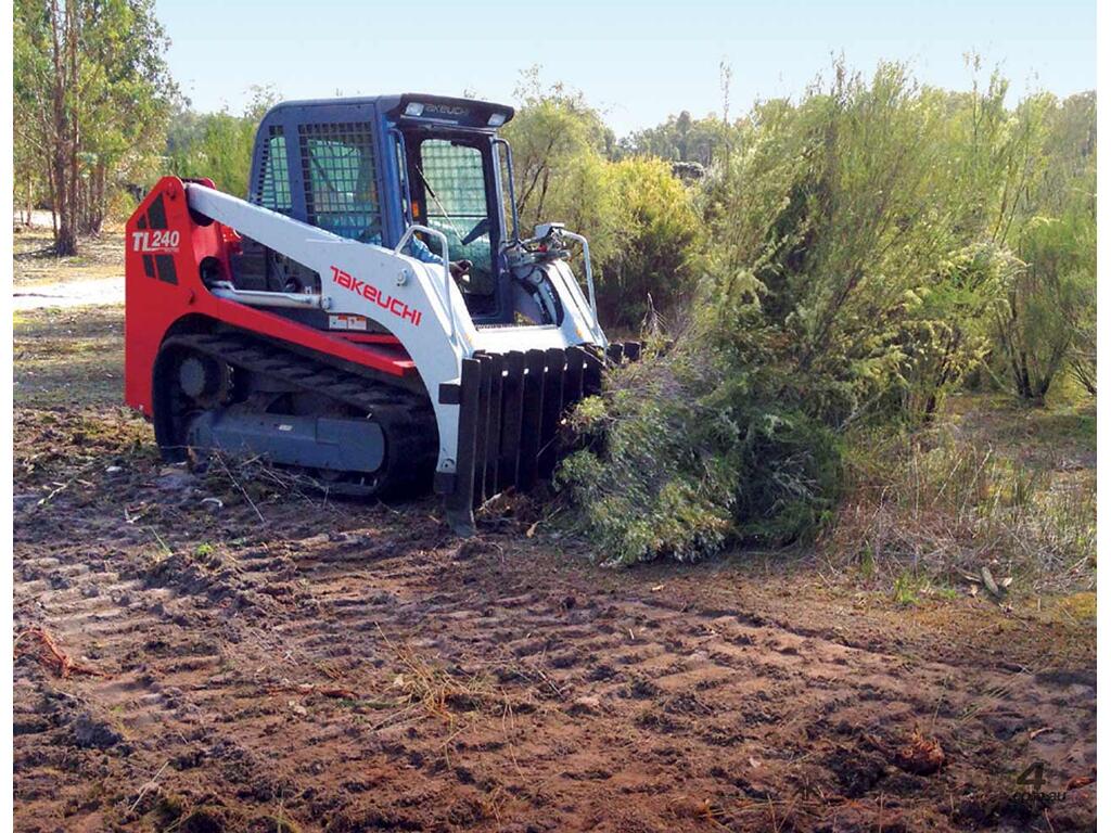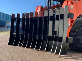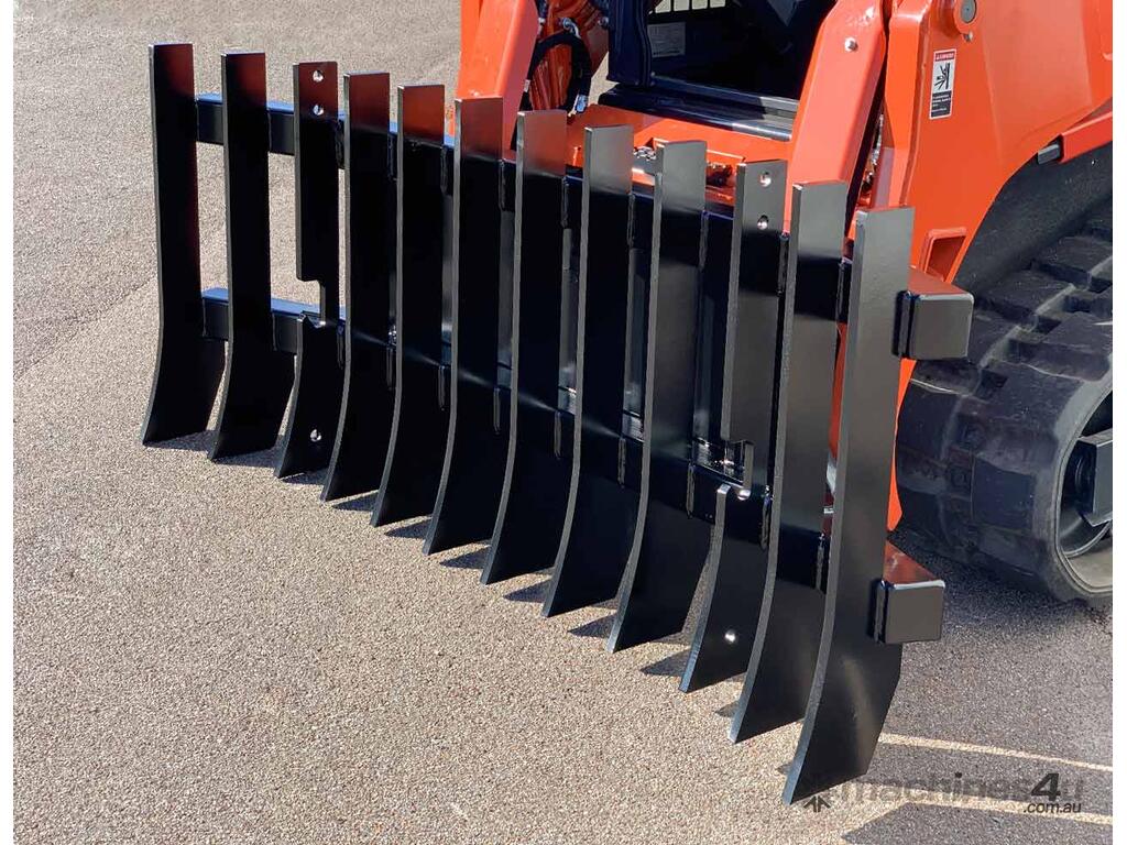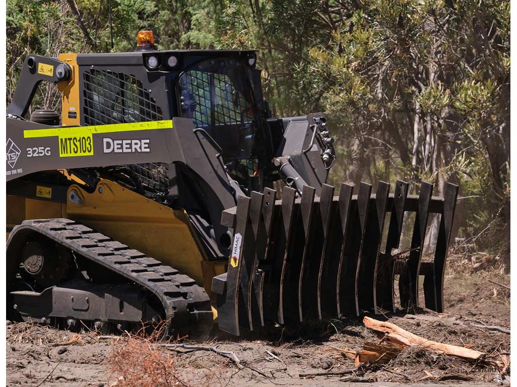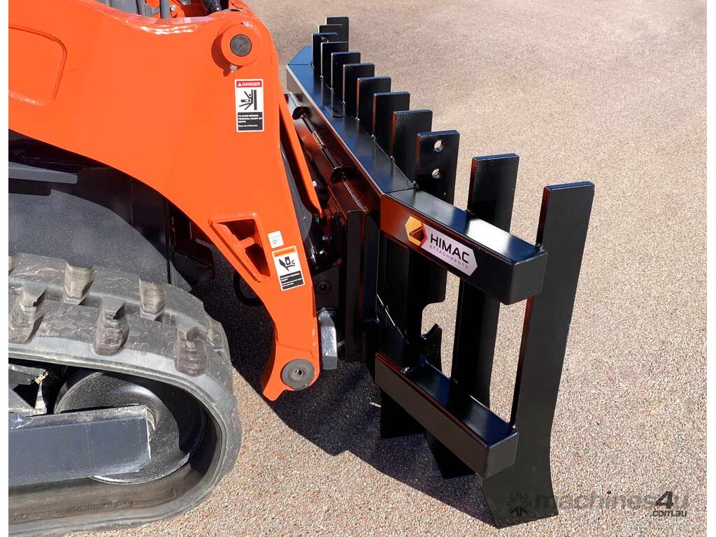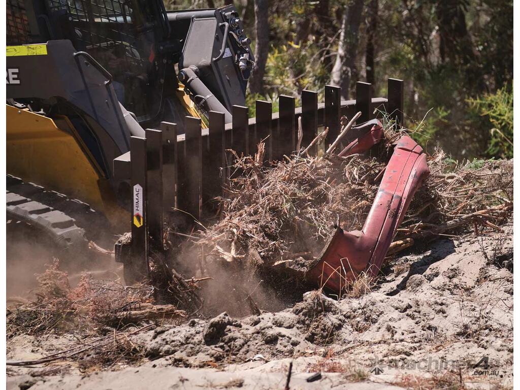 The Push Stick Rake from Himac Attachments gives you amazing vegetation control with its heavy duty build and side wings. This unique skid steer attachment makes incredibly short work of clearing land, fence lines, debris and other vegetation. The spacing between its tynes provides excellent sifting to minimise waste and maximise productivity.