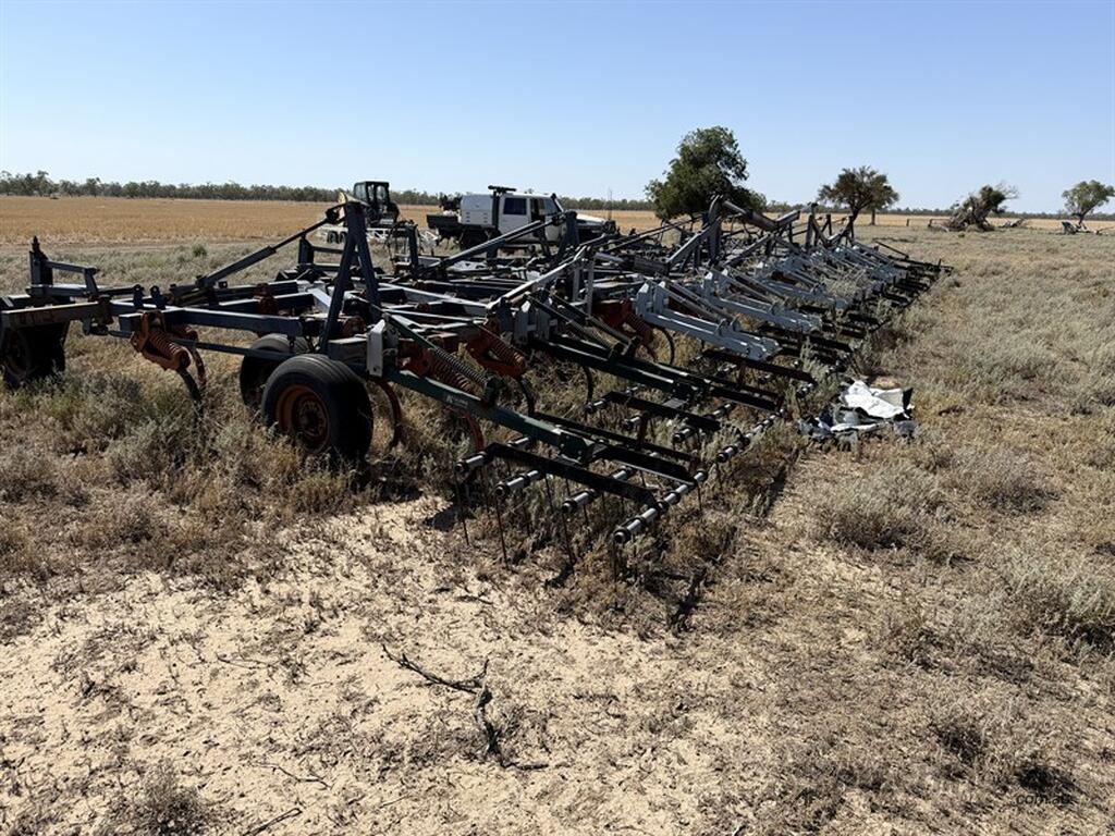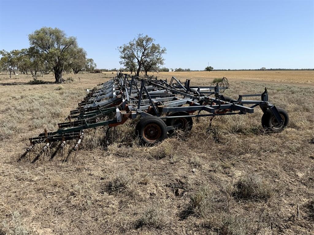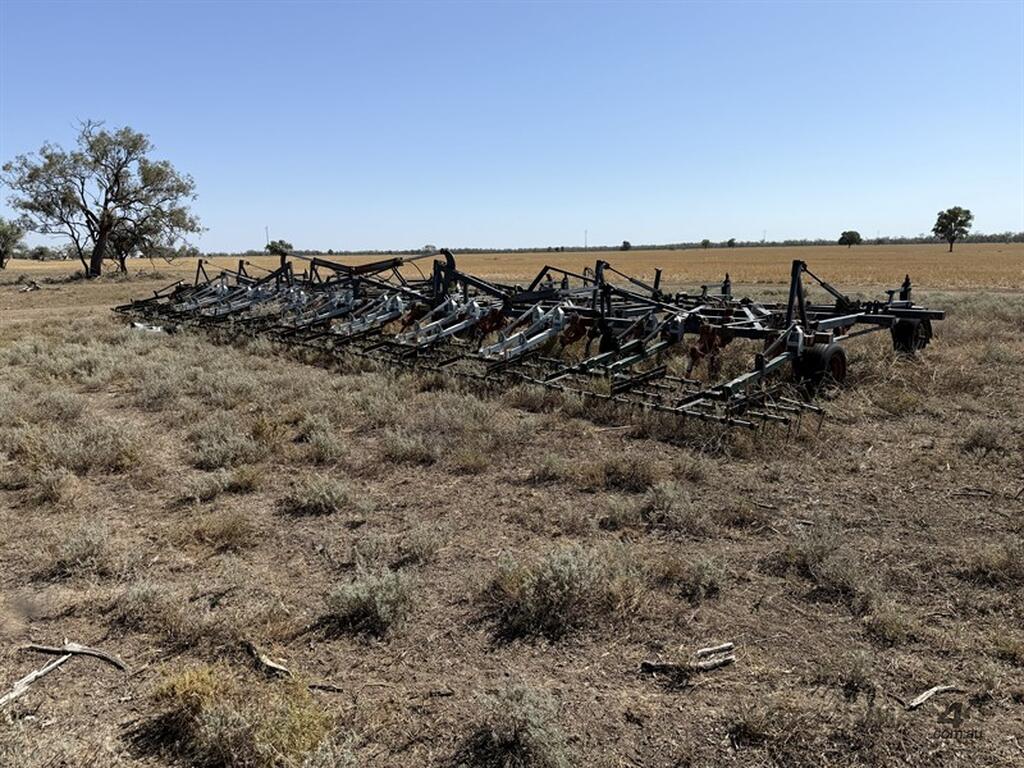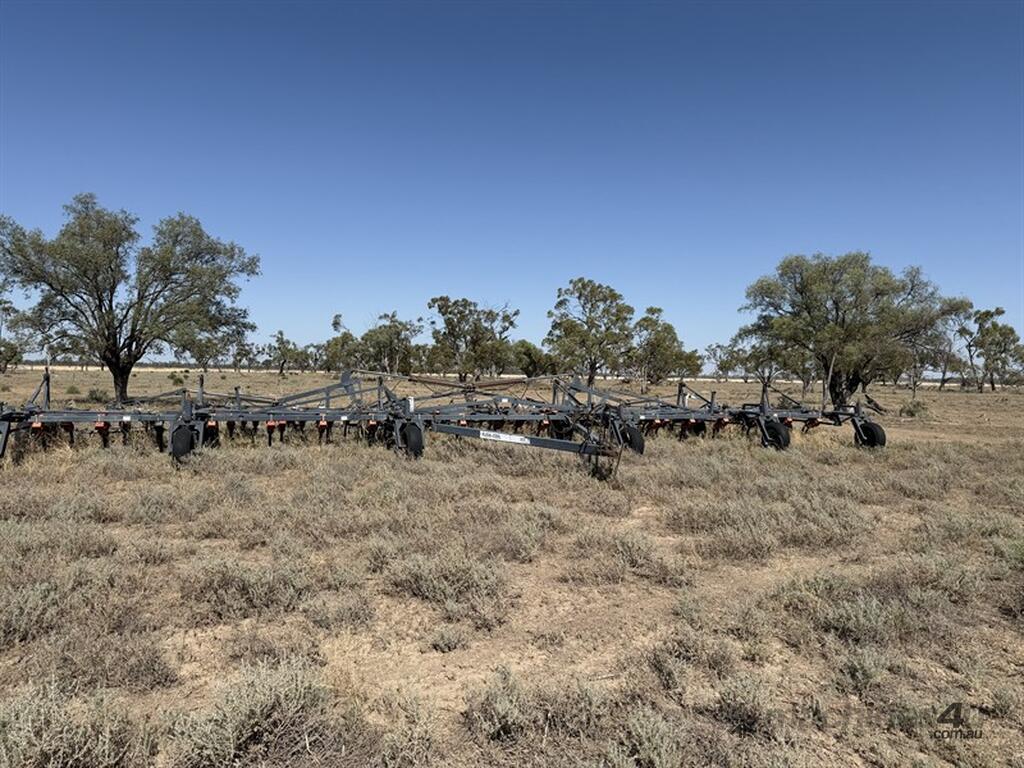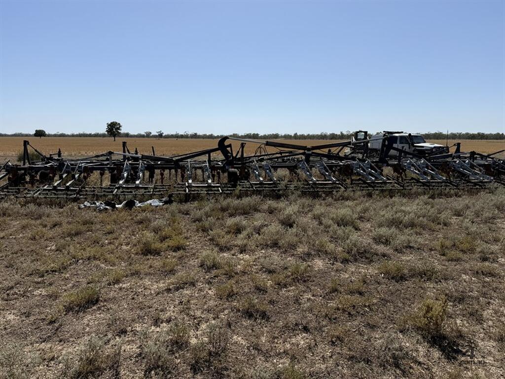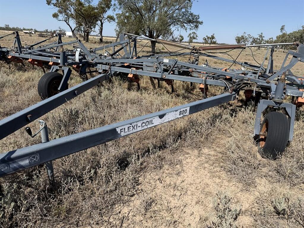 FLEXICOIL 820 60FT CHISEL PLOUGH TILLAGE & SEEDING - 820 model, 550lb breakout, 12 inch spacings, with sweeps, covering finger harrows. Hydraulic fold and lift. Chassis No C820 B00-U087338. Located Walgett NSW. Contact Sandy Bailey for more information.
