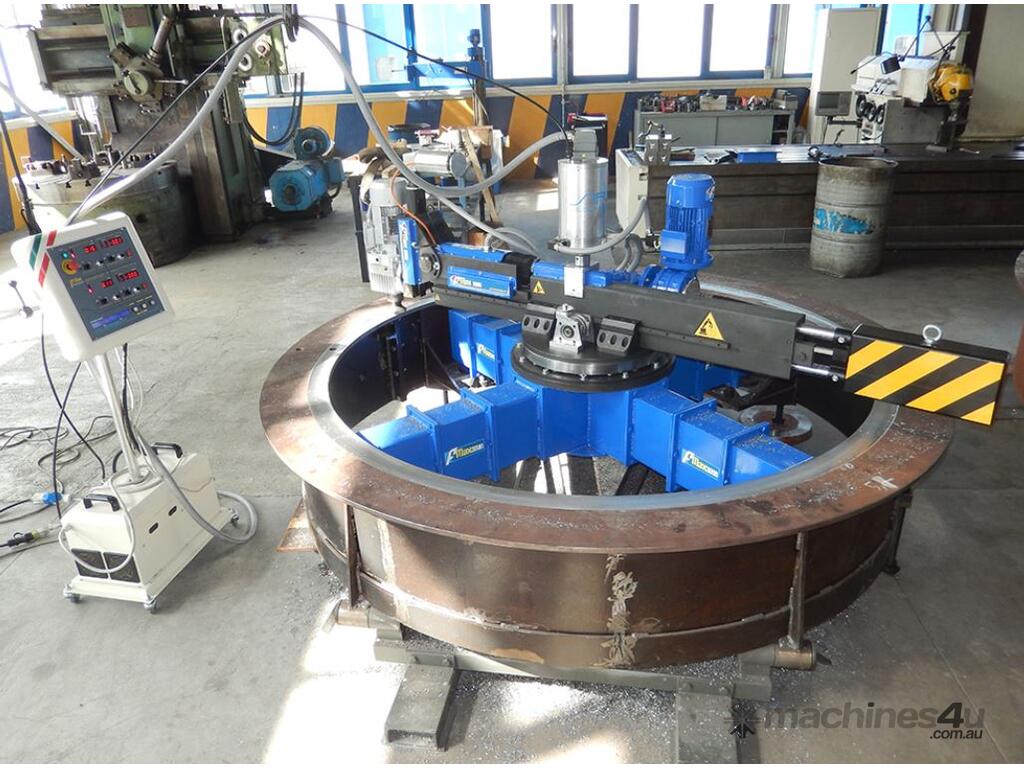 A New-concept machine entirely controlled by an electronic controller capable of performing the most diverse machining jobs on the faces of large cylindrical tubing, achieving unprecedented finish and accuracy results.
