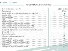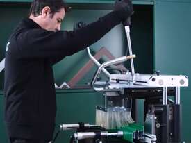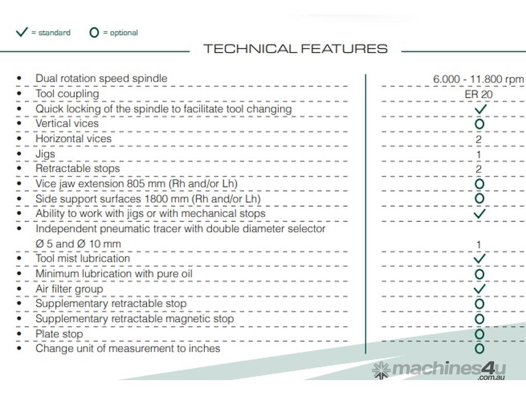 An industrial, easy to use copy router. Twin large levers ergonomically placed make machining movements smooth and controlled - and ensure the operators hands are away from the cutting zone. A quick change tool system (ER16 collett holder). Two adjustable pneumatic vices for secure extrusion clamping